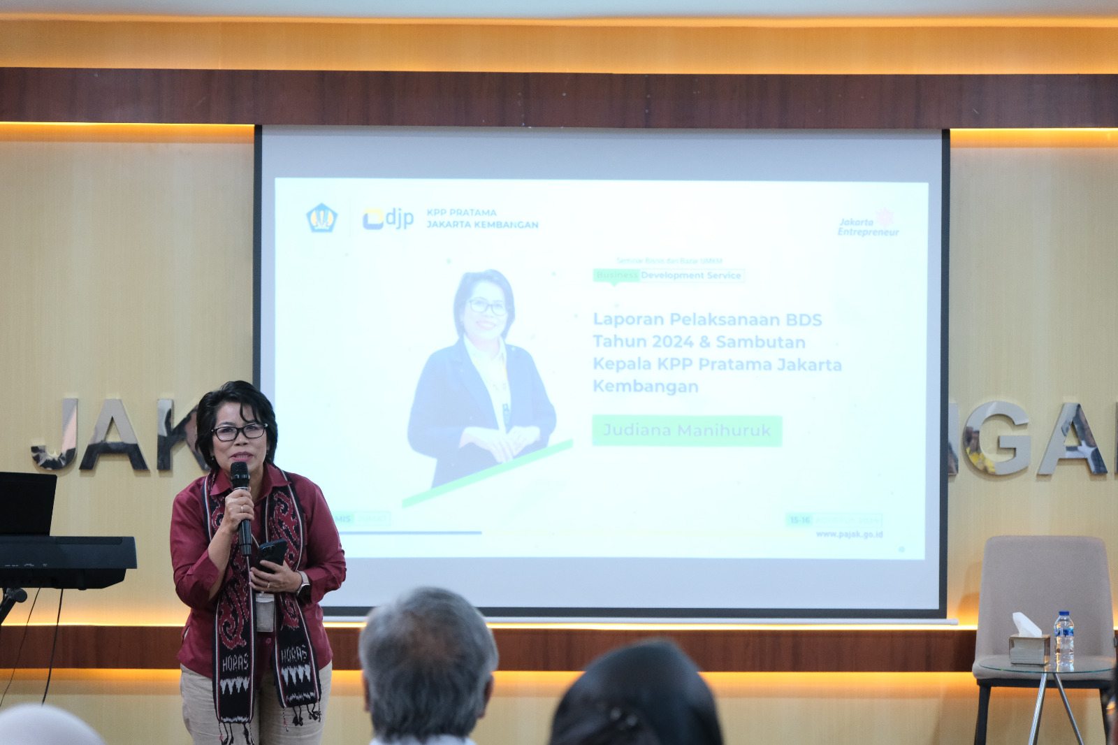 Kantor Pelayanan Pajak (KPP) Pratama Jakarta Kembangan menggelar Business Development Services (BDS) selama dua hari bagi pelaku Usaha Mikro, Kecil, dan Menengah (UMKM) di Aula KPP Pratama Jakarta Kembangan, Kembangan, Jakarta Barat (Kamis, 15/8). Kegiatan ini bertema “Kembangan EnTAXpreneurship session 4, UMKM Next Level: Modal aman-Marketing Handal” BDS kali ini digelar selama 2 hari dan diikuti kurang lebih 50 peserta setiap harinya.