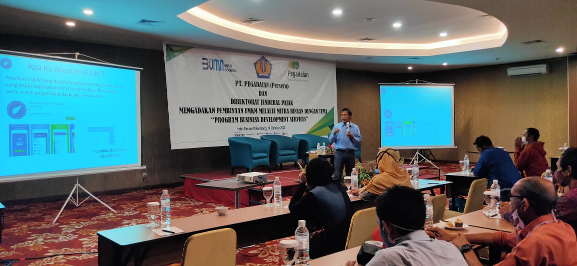 Bekerjasama dengan Pegadaian, Kanwil Ditjen Pajak Sumatera Selatan dan Kep. Bangka Belitung mengadakan program pelatihan pengusaha UKM di Hotel Beston, Palembang (Rabu, 14/10). Sekitar 75 pengusaha UKM hadir dalam acara tersebut dengan tetap memperhatikan protokol kesehatan yang ketat. Kegiatan tersebut merupakan sinergi antara program Business Development Service (BDS) Ditjen Pajak dengan program BUMN untuk Indonesia PT Pegadaian Persero.