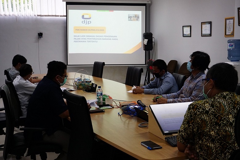 Kantor Pelayanan Pajak (KPP) Pratama Mamuju mengadakan Sosialisasi Perpajakan terkait Peraturan Menteri Keuangan Republik Indonesia Nomor 89/PMK.010/2020 tentang Nilai Lain sebagai Dasar Pengenaan Pajak atas Penyerahan Barang Hasil Pertanian Tertentu melalui webinar Zoom Meeting (Kamis,15/10). Kegiatan ini dilakukan di Ruang Rapat KPP Pratama Mamuju di Kabupaten Mamuju dengan dihadiri oleh Kepala Kantor, Kepala Seksi Pengawasan dan Konsultasi I, serta beberapa Account Representative KPP Pratama Mamuju.