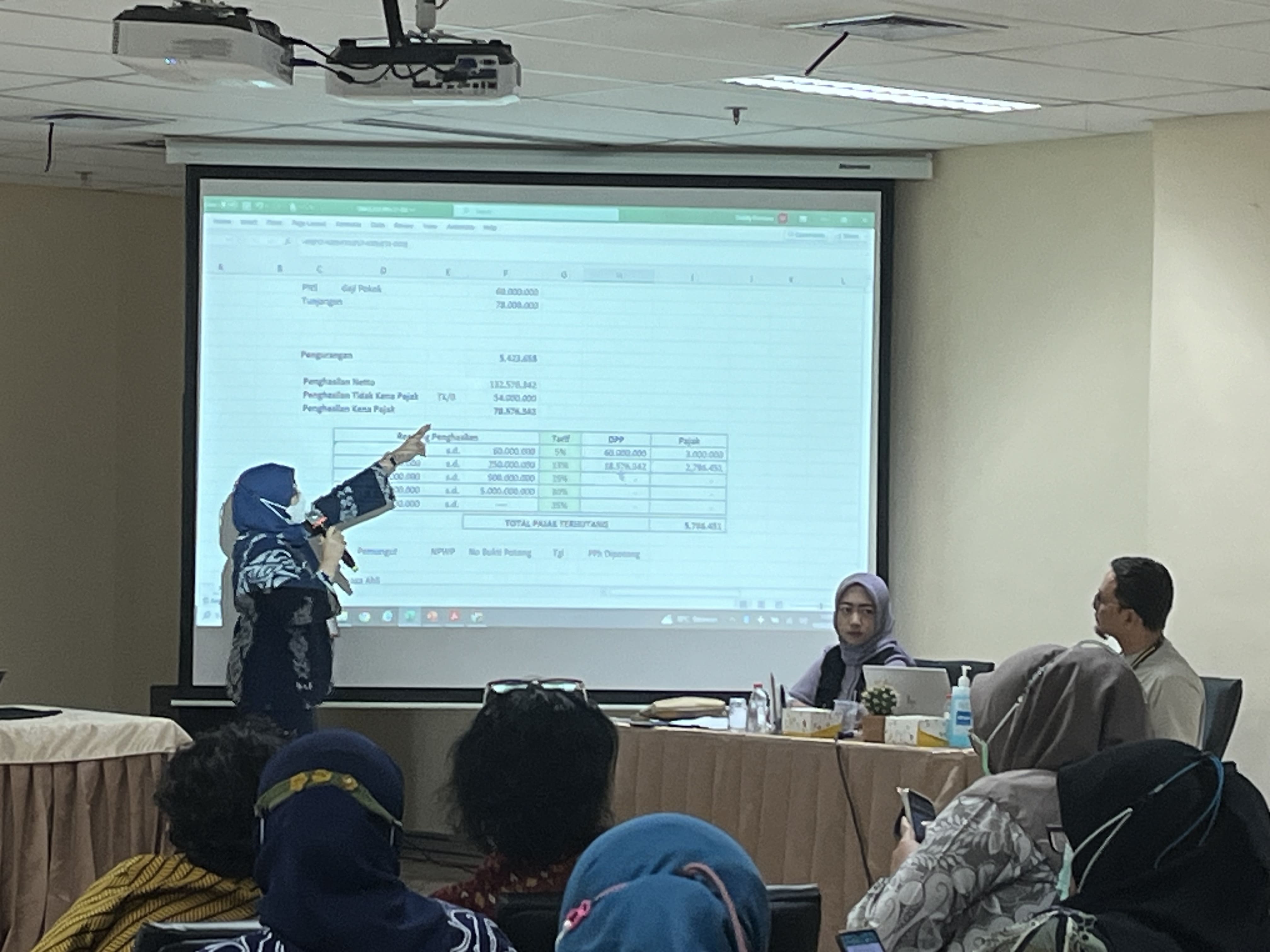 Selanjutnya materi mengenai PMK Nomor 168 Tahun 2023 disampaikan Tim Penyuluh Pajak dan Account Representative (AR) KPP Pratama Jakarta Koja yakni Deddy Permana dan Fitri Mei Lestari. Deddy menjelaskan bahwa PMK ini dibuat untuk memberikan kepastian hukum, kemudahan, dan kesederhanaan pemotongan PPh 21 oleh pemberi kerja. PMK diterbitkan agar bisa mengakomodir penyesuaian tarif pemotongan menggunakan tarif efektif dan tarif Pasal 17 ayat (1) Undang-Undang (UU) Pajak Penghasilan (PPh). Kemudian Deddy dan Fitri menjelaskan mengenai penghitungan dengan kalkulator pajak yang diluncurkan oleh Direktorat Jenderal Pajak (DJP) pada situs kalkulator.pajak.go.id dan mempraktikkan secara langsung skema penghitungan pemotongan PPh Pasal 21 yang menggunakan tarif efektif dan tarif Pasal 17 ayat (1) huruf a UU PPh.