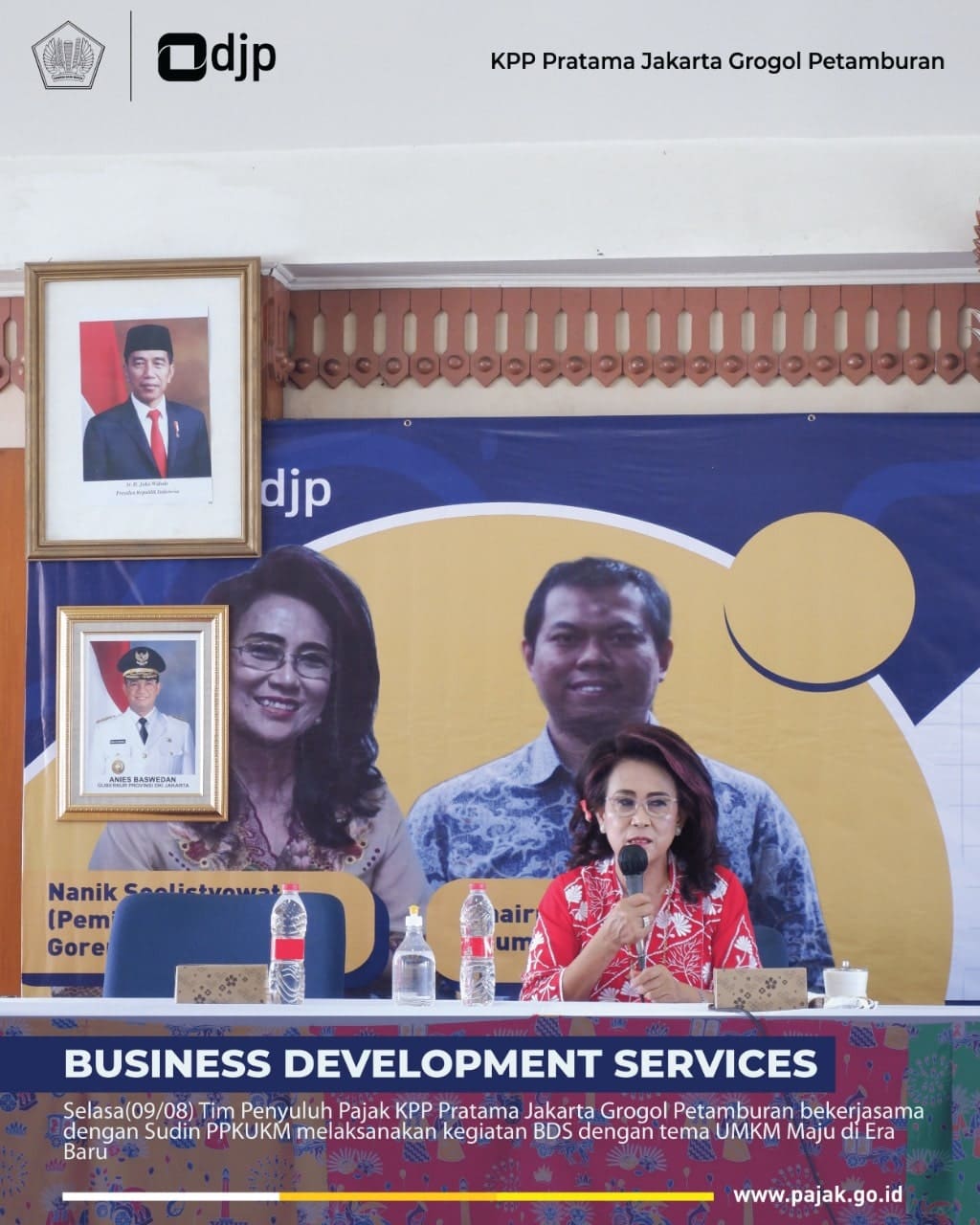Kantor Pelayanan Pajak (KPP) Pratama Jakarta Grogol Petamburan bekerja sama dengan Suku Dinas PPKUKM Kecamatan Grogol Petamburan mengadakan seminar Pengembangan Bisnis di Era New Normal bertempat di KPP Jakarta Grogol Petamburan (Selasa, 9/8). Mengusung tema "UMKM Maju di Era Baru", acara ini menghadirkan narasumber Pemilik Pisang Goreng Bu Nanik, Nanik Soelistyowati dan Praktisi UMKM Chairul Saleh.