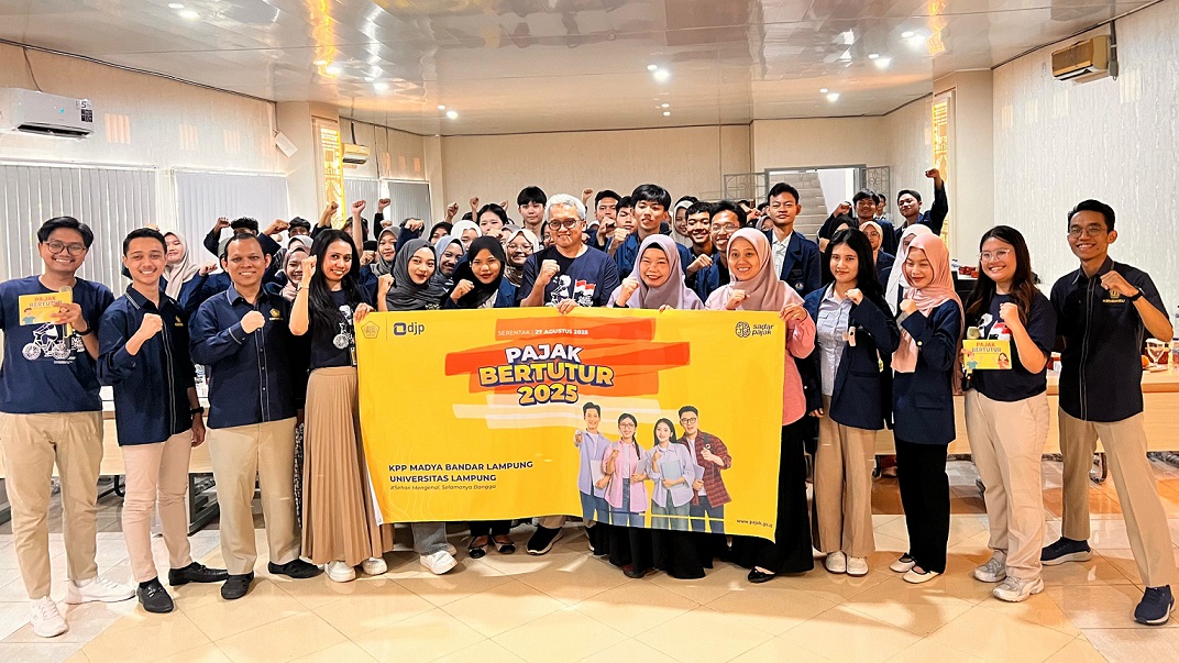 Kantor Pelayanan Pajak (KPP) Madya Bandar Lampung sukses menggelar kegiatan Pajak Bertutur Tahun 2025 bersama 60 mahasiswa dan dosen di Gedung E Fakultas Ekonomi dan Bisnis (FEB) Universitas Lampung (Unila), Jl. Prof. Dr. Ir. Sumantri Brojonegoro No.1, Kota Bandar Lampung (Rabu, 27/8).