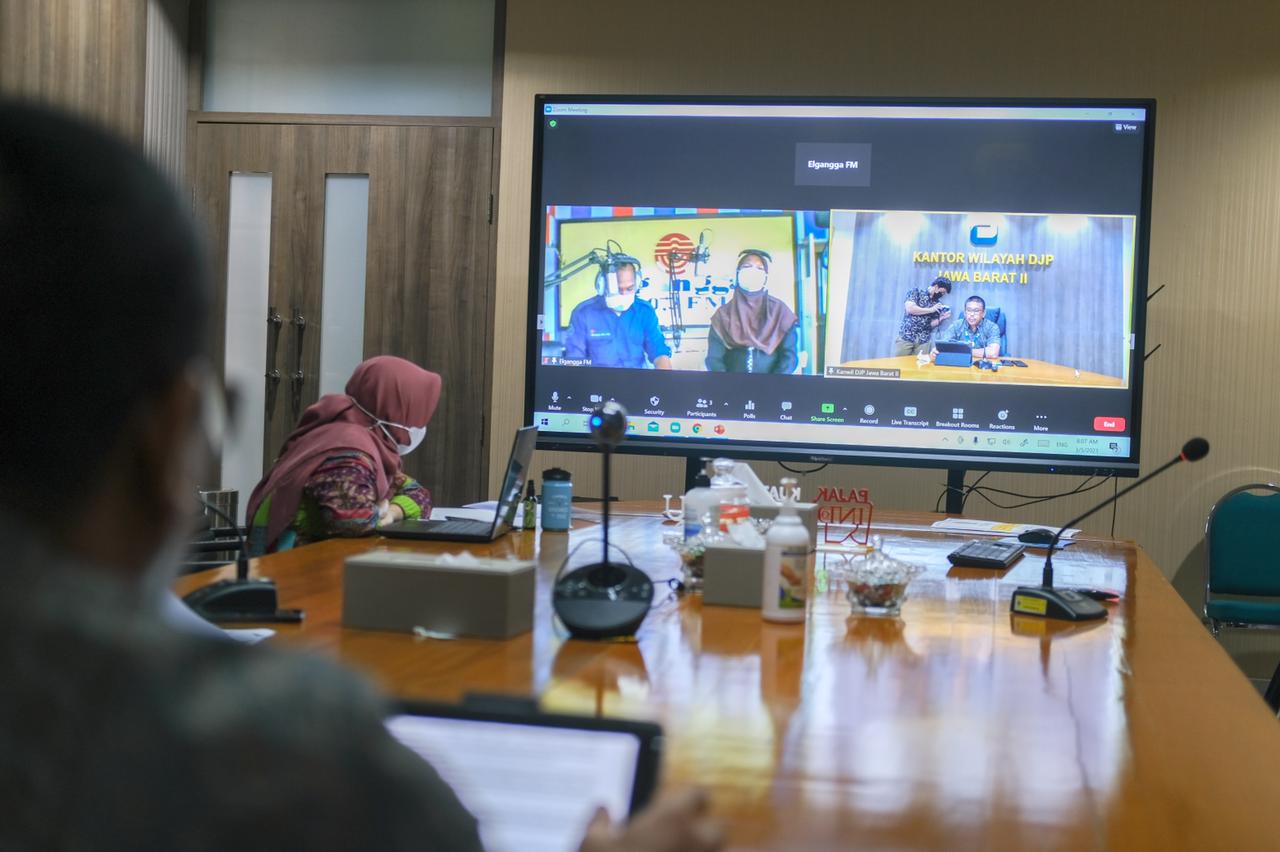 Kanwil DJP Jawa Barat II bekerja sama dengan salah satu radio lokal di Bekasi menggelar gelar wicara (talk show) radio tentang Pelaporan SPT Tahunan secara virtual di ruang rapat Kanwil DJP Jawa Barat II (Jumat, 5/3).