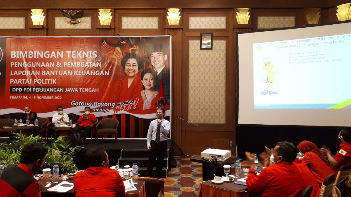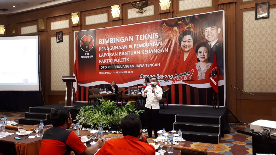 Kegiatan bertajuk Bimbingan Teknis Penggunaan dan Pembuatan Laporan Bantuan Keuangan Partai Politik ini diikuti oleh 200 orang perwakilan pengurus Dewan Perwakilan Cabang (DPC) PDIP se-Jawa Tengah. Selama lebih dari lima jam, bimbingan teknis menghadirkan tiga orang pembicara yakni, Fungsional Pemeriksa Pajak Madya, Kanwil DJP Jawa Tengah I Erwin Sabariman; Bagus Kurniawan dari BPK Provinsi Jawa Tengah, serta Wakil Ketua Bidang Polhukam PDIP Perjuangan Bona Ventura Sulistiana.
