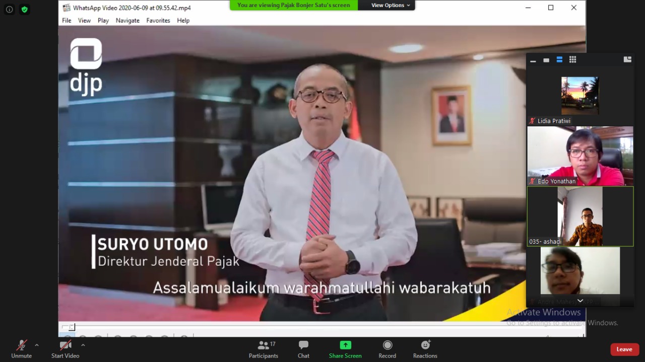 Selanjutnya materi disampaikan oleh Budi Subarkah dan Muhammad Sofyan selaku Account Representative dari Seksi Pengawasan dan Konsultasi II KPP Pratama Jakarta Kebon Jeruk Satu. Di akhir acara, wajib pajak diberi kesempatan untuk bertanya. KPP Pratama Jakarta Kebon Jeruk Satu berharap dengan adanya kelas pajak daring ini dapat mengedukasi wajib pajak di tengah situasi pandemi seperti sekarang ini.
