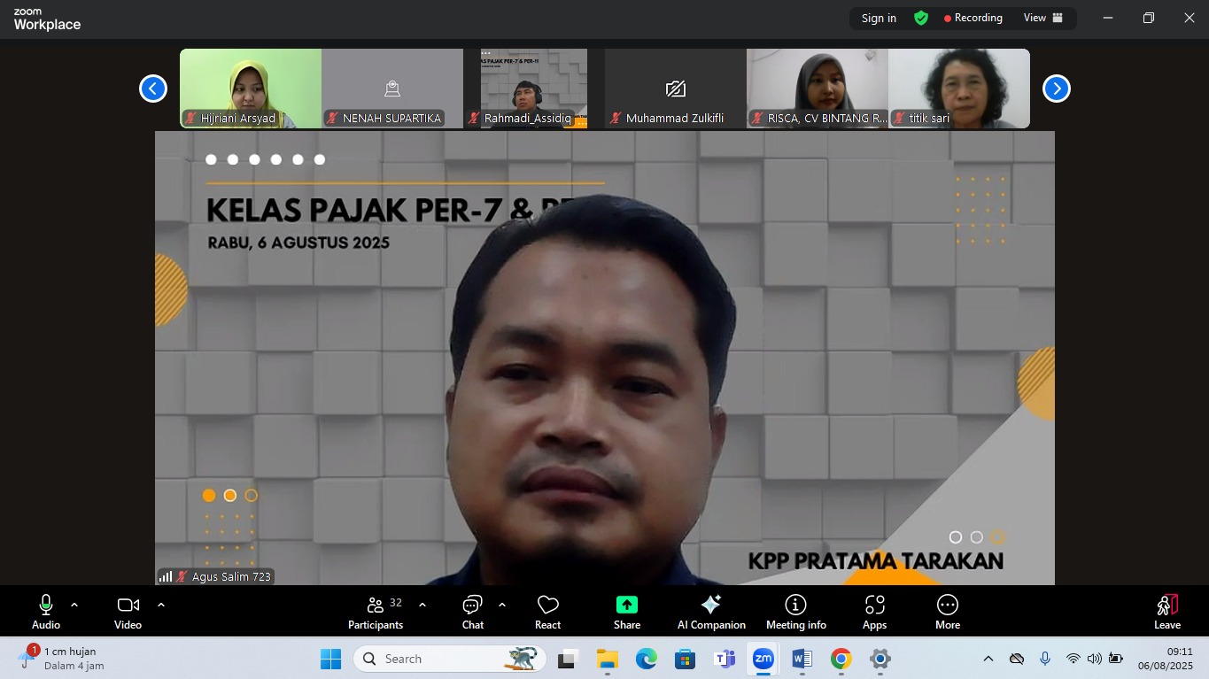 Sejumlah 30 peserta mengikuti Kelas Pajak Khusus Pengusaha Kena Pajak (PKP) yang diselenggarakan secara daring melalui Zoom Meeting oleh KPP Pratama Tarakan (Rabu, 6/8).