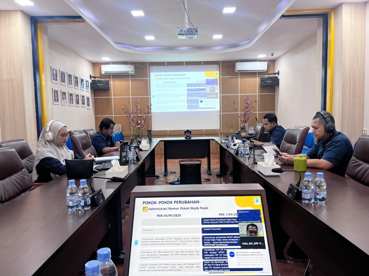 Kegiatan dibuka oleh Kepala Seksi Pelayanan, Taufik Hidayat, yang dalam sambutannya menyampaikan, “Pembaruan ketentuan perpajakan perlu dipahami bersama agar setiap pengusaha kena pajak dapat melaksanakan kewajibannya secara tepat waktu dan sesuai peraturan.”