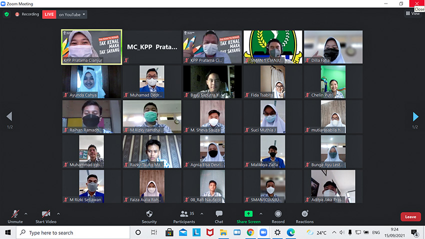 Kantor Pelayanan Pajak (KPP) Pratama Cianjur menyelenggarakan kegiatan Tax Goes To School (TGTS) secara daring melalui aplikasi Zoom Cloud Meetings dan Youtube secara Live di aula lantai dua KPP Pratama Cianjur, Kabupaten Cianjur (Rabu, 15/9).