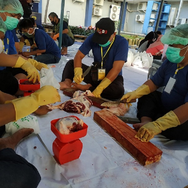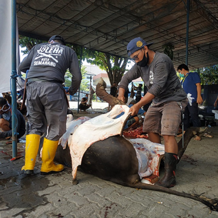 Pegawai Negeri Sipil (PNS) di lingkungan Gedung Keuangan Negara (GKN) Semarang II dan jemaah masjid Salahuddin melaksanakan kegiatan ibadah kurban dengan menyembelih empat ekor sapi dan empat ekor kambing di halaman GKN Semarang II (Sabtu, 1/8).