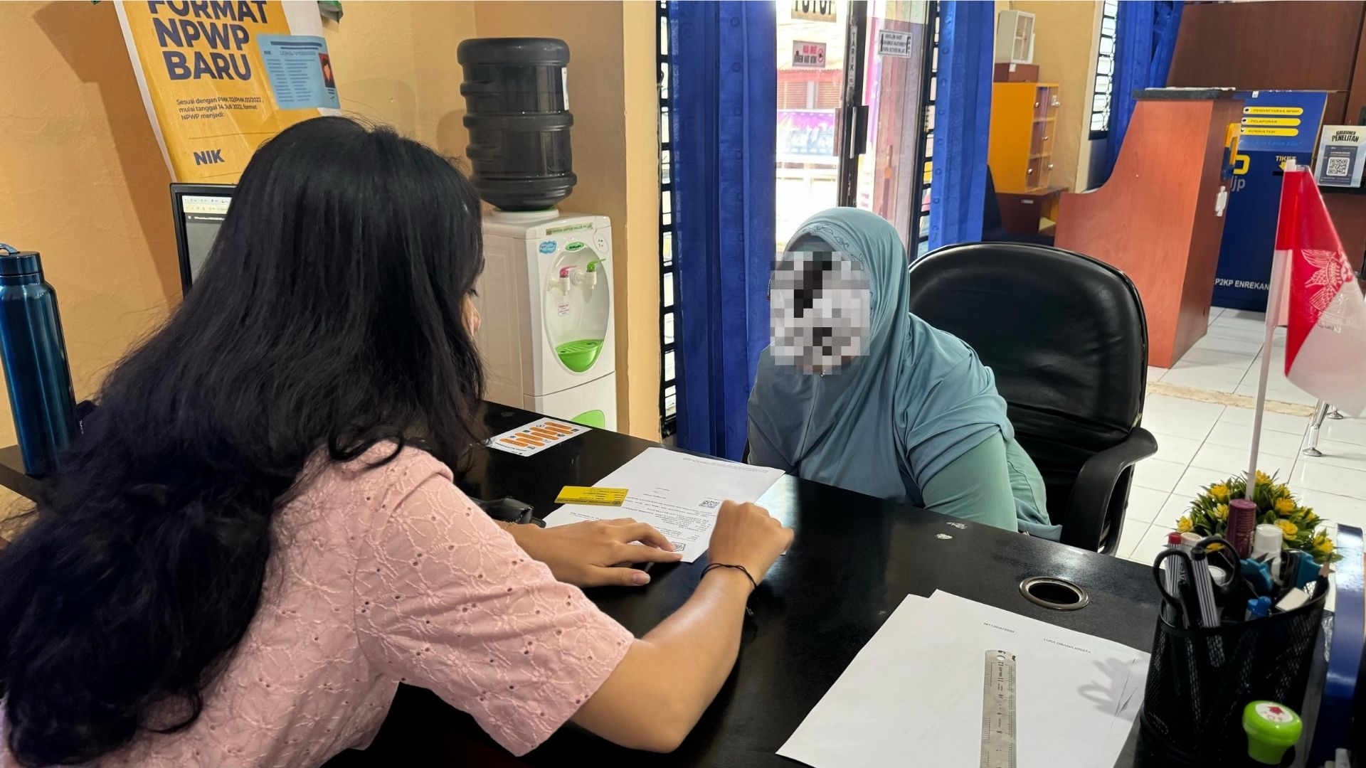 Kantor Pelayanan, Penyuluhan, dan Konsultasi Perpajakan (KP2KP) Enrekang menerima kedatangan wajib pajak istri yang ingin melakukan pembaruan Nomor Pokok Wajib Pajak (NPWP) miliknya di Tempat Pelayanan Terpadu (TPT) KP2KP Enrekang (Kamis, 19/9).