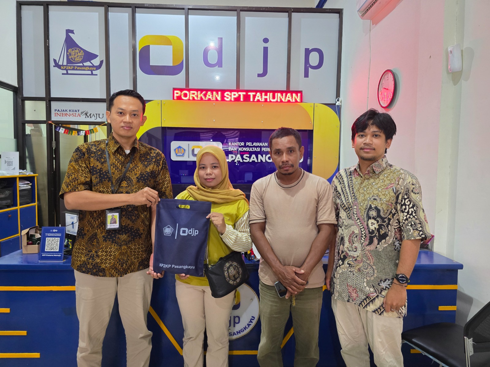 Apresiasi diserahkan secara langsung oleh Kepala KP2KP Pasangkayu, Muhammad Najih Aulady, kepada wajib pajak. Pemberian apresiasi berupa suvenir ini dapat menjadi contoh bagi wajib pajak lain untuk segera melaporkan SPT Tahunannya tanpa menunggu batas waktu yang ditentukan.