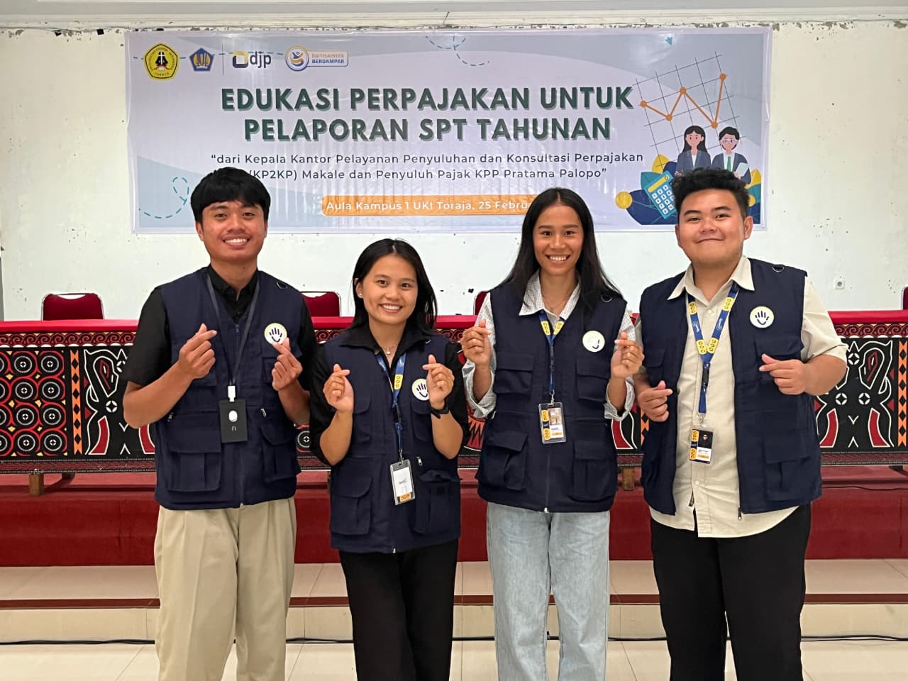 "Untuk menjunjung rasa nasionalisme yang tinggi, melaporkan SPT Tahunan merupakan kewajiban yang harus dipenuhi. Dengan melaporkan kewajiban pajak secara benar dan tepat waktu, kaum akademisi dapat menciptakan budaya kepatuhan pajak yang lebih baik serta menerapkan motto UKI Toraja yaitu ‘Menjadi Berkat Bagi Semua’ termasuk untuk Indonesia. Kami sangat berterima kasih atas perhatian dan dukungan kantor pajak dalam memberikan pemahaman yang lebih luas tentang pentingnya mematuhi kewajiban perpajakan," tambahnya.