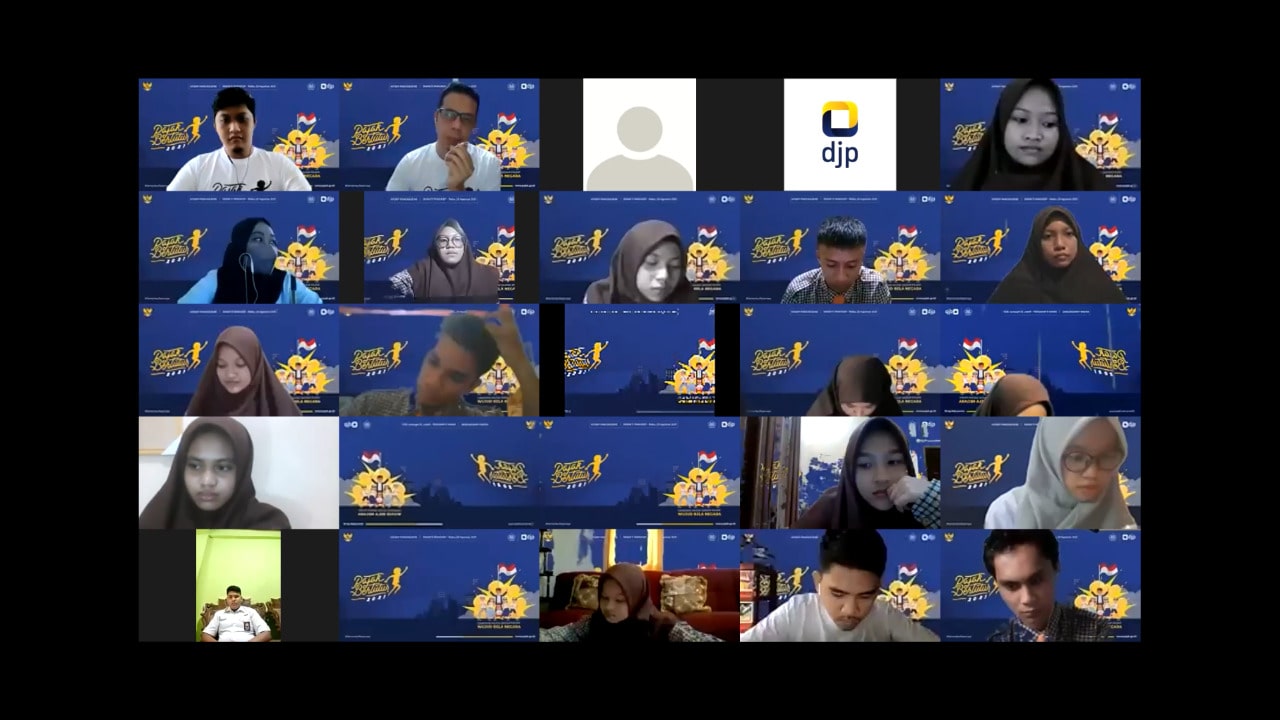 Setelah penyampaian materi, acara dilanjutkan dengan sesi tanya jawab. Para peserta pun sangat antusias mengikuti seluruh rangkaian acara, terbukti dari banyaknya pertanyaan dari peserta yang bersifat kritis dan komprehensif. Selanjutnya, pemahaman peserta diuji dengan melaksanakan kuis melalui aplikasi quizizz. Acara yang mengangkat tema “Generasi muda sadar pajak, wujud bela negara” tersebut ditutup dengan foto bersama panitia dan peserta secara virtual.