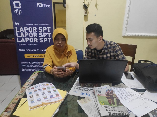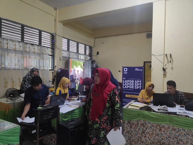 Kantor Pelayanan, Penyuluhan, dan Konsultasi Perpajakan (KP2KP) Sungguminasa melakukan kunjungan kerja ke SMAN 1 Gowa dalam rangka memberikan asistensi pelaporan SPT Tahunan bagi para guru, bertempat di ruang guru SMAN 1 Gowa (Kamis, 27/2). Kegiatan asistensi pelaporan SPT Tahunan ini dikemas dalam bentuk pojok pajak.