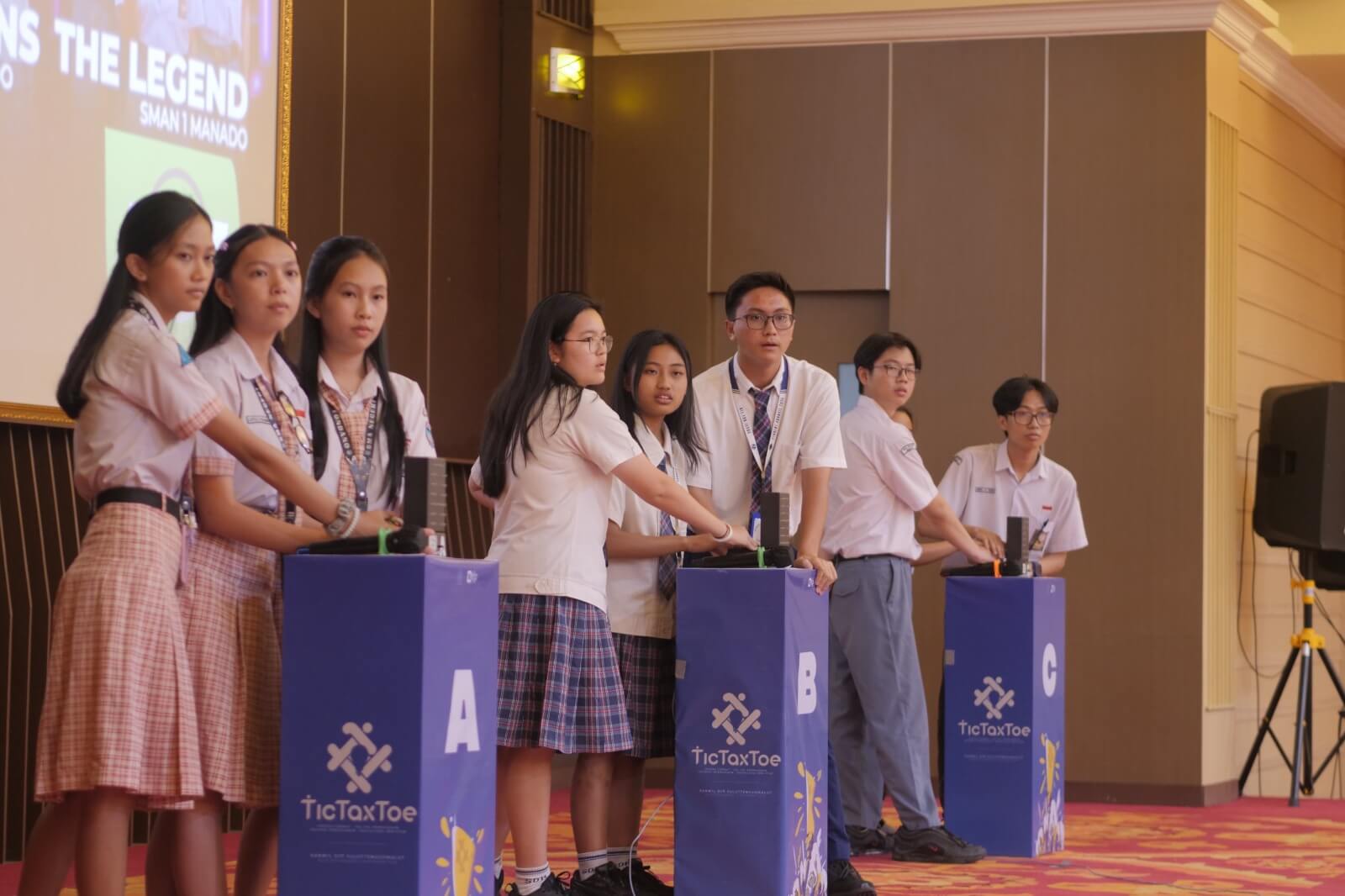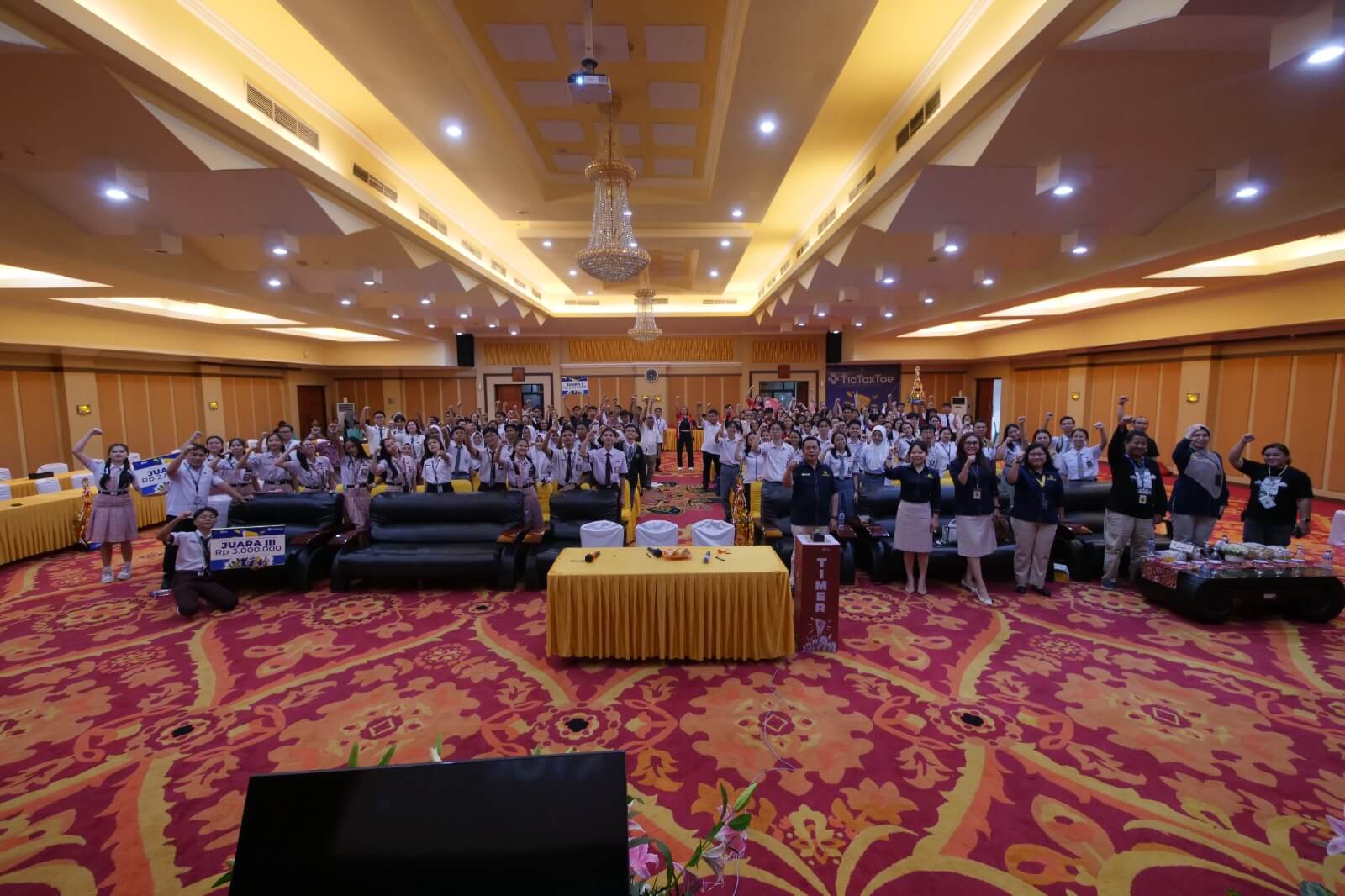 Ratusan siswa-siswi dari sekolah menengah atas merayakan jalannya acara Tic Tax Toe 2024 di Aula Lantai 6 Gedung Keuangan Negara, Manado, Sulawesi Utara (Rabu, 4/9). Seratus tujuh puluh peserta ini tidak hanya berasal dari Kota Manado saja, karena para peserta ini merupakan siswa-siswi yang bersekolah di sekolah menengah atas di Sulawesi Utara. Bahkan, ada satu tim terdaftar yang bersekolah di Kota Gorontalo, Gorontalo.