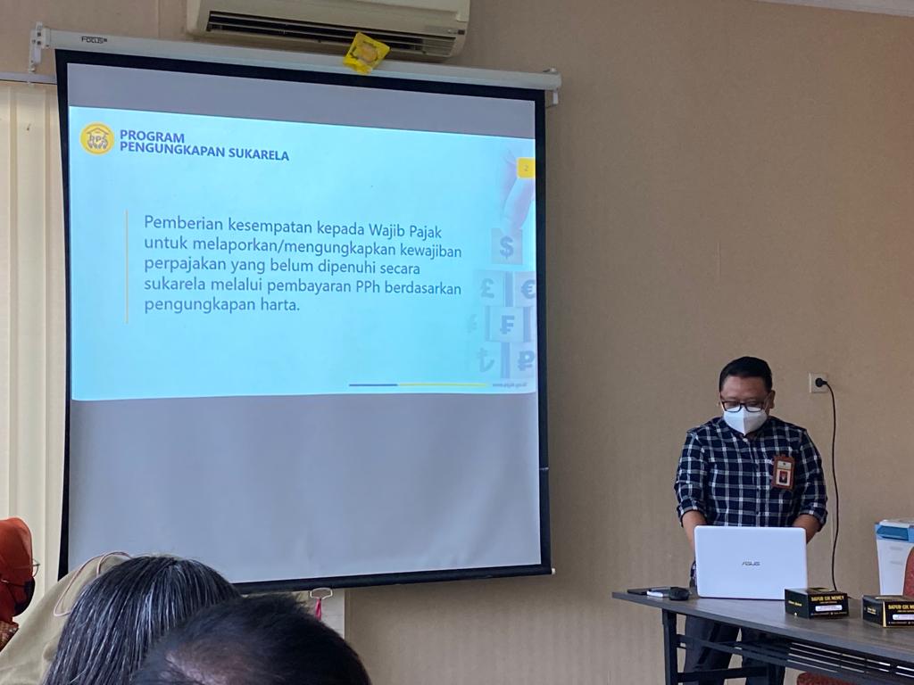 Kantor Pelayanan Pajak (KPP) Pratama Blora berkoordinasi dengan Kantor Pelayanan, Penyuluhan, dan Konsultasi Perpajakan (KP2KP) Purwodadi menyelenggarakan sosialisasi tentang Program Pengungkapan Sukarela (PPS) di Ruang Rapat I Rumah Sakit Umum Daerah (RSUD) Dr. Soedjati Purwodadi, Grobogan (Kamis, 9/6).