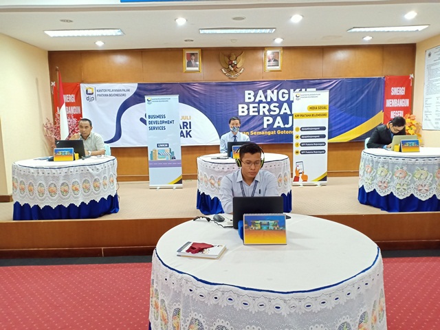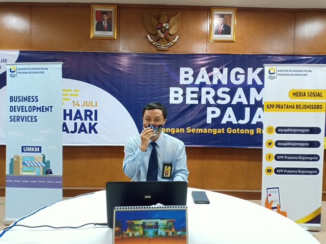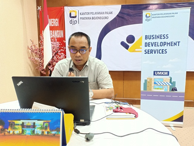Sebanyak 36 Pelaku Usaha Mikro Kecil Menengah (UMKM) di Bojonegoro mengikuti kegiatan Business Development Services (BDS) yang diadakan Kantor Pelayanan Pajak (KPP) Pratama Bojonegoro melalui aplikasi Zoom Meeting di Aula Lantai 3 KPP Pratama Bojonegoro (Rabu, 23/9).