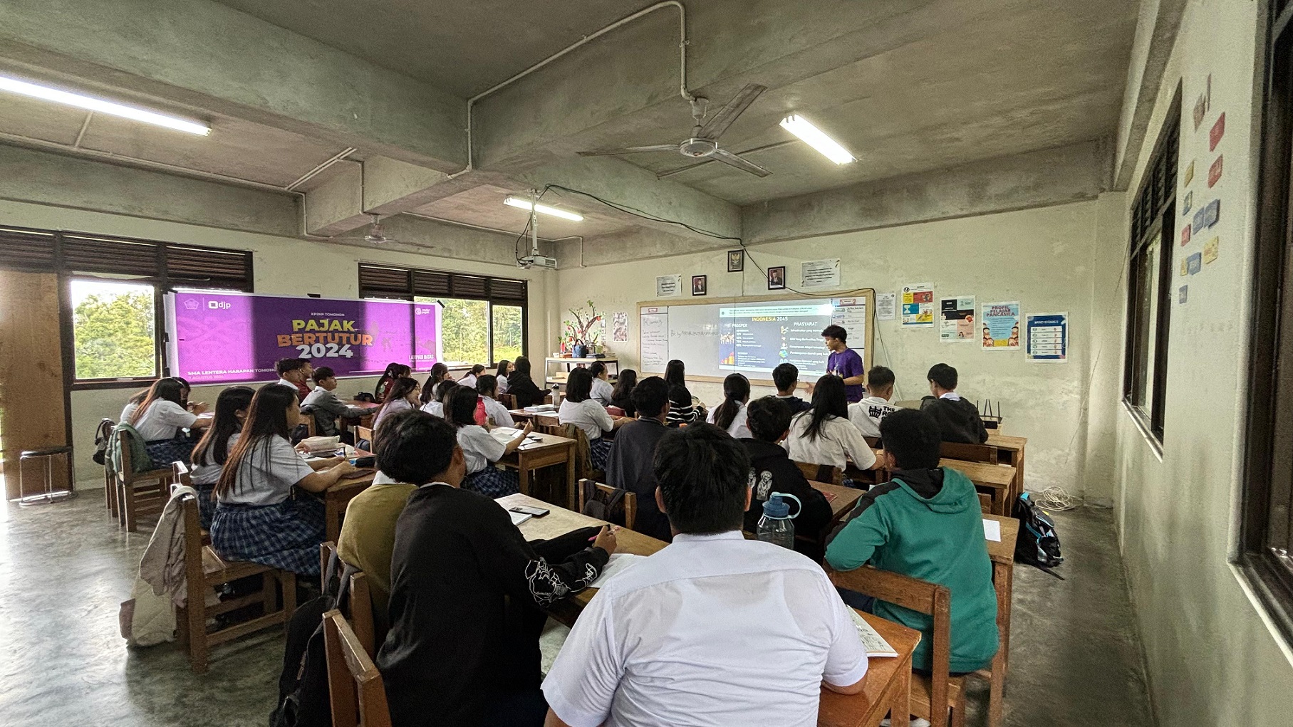 Kantor Pelayanan Penyuluhan dan Konsultasi Perpajakan (KP2KP) Tomohon melaksanakan kegiatan Pajak Bertutur 2024 di SMA Lentera Harapan Tomohon, Kelurahan Paslaten Satu, Kecamatan Tomohon Timur, Kota Tomohon, Sulawesi Utara (Rabu, 7/8). Kegiatan kali ini mengambil tema "Lampaui Batas, Bersatu untuk Indonesia Emas" dengan tagline "Sehari Mengenal, Selamanya Bangga".