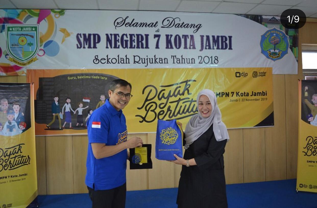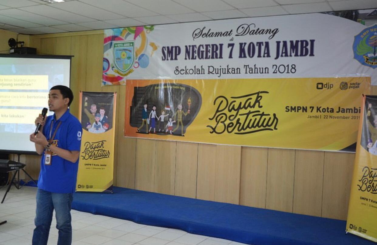 Selain SDN 185 Kota Jambi KPP Pratama Jambi Telanaipura turut melaksanakan Kegiatan Pajak Bertutur di sekolah yang tak jauh dari kantor, yaitu SMPN 7 Kota Jambi (Jumat, 22/11). Rangkaian kegiatan terdiri dari perlombaan Rangking 1 dan persembahan lagu untuk Guru-guru di SMPN 7 sendiri. Diawali dengan semangat dan keceriaan acara bertukar sendu ketika penampilan persembahan untuk guru ditampilkan.