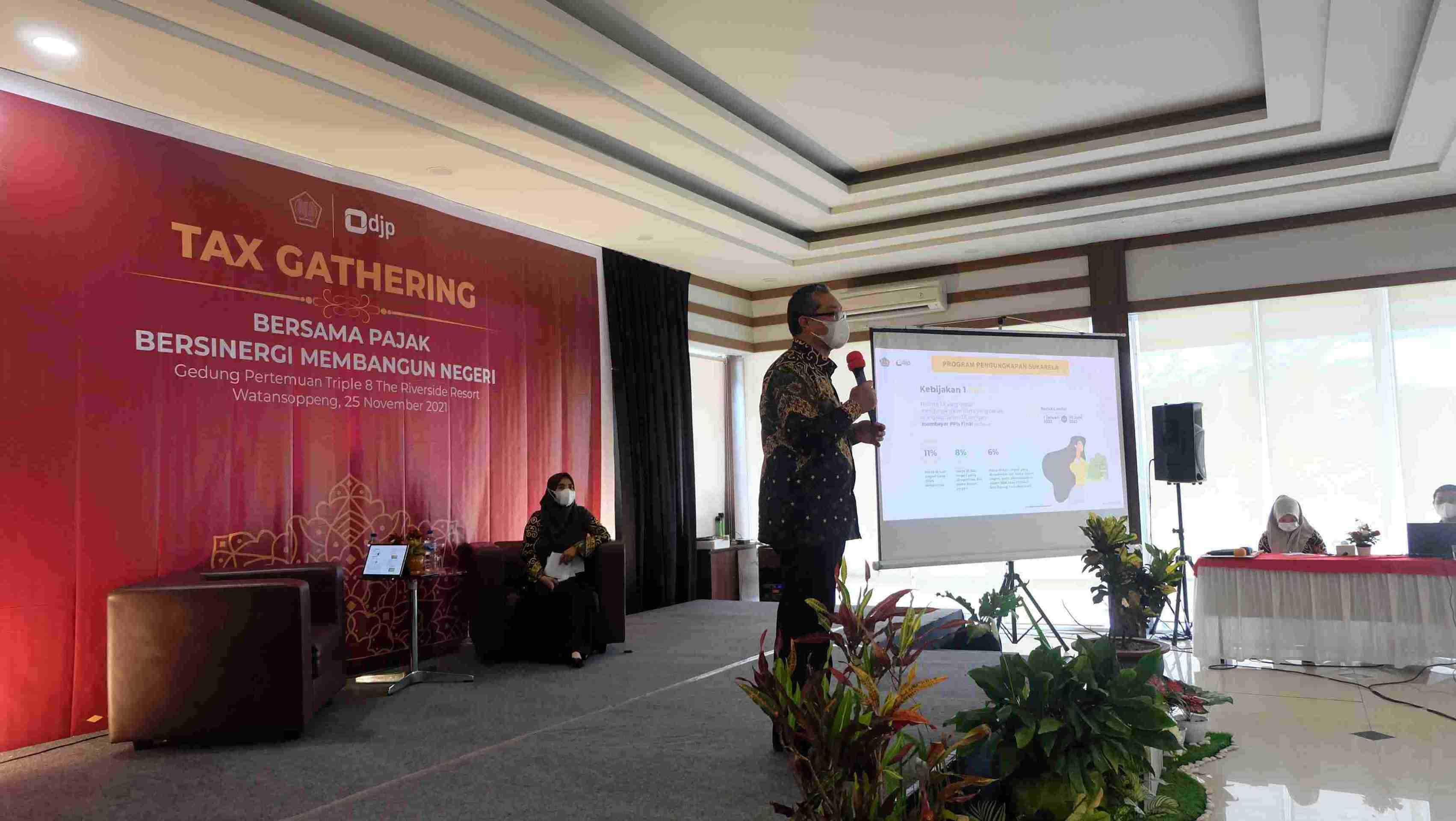 Kantor Pelayanan Pajak (KPP) Pratama Watampone bekerja sama dengan Kantor Pelayanan, Penyuluhan, dan Konsultasi Perpajakan (KP2KP) Watansoppeng dan KP2KP Sengkang mengadakan acara Sosialisasi Undang-Undang Harmonisasi Perpajakan (UU HPP) (Kamis, 25/11). Kegiatan yang menjadi bagian dari agenda acara Tax Gathering ini diadakan di ruang aula Triple 8 the Riverside Resort, Kabupaten Soppeng.