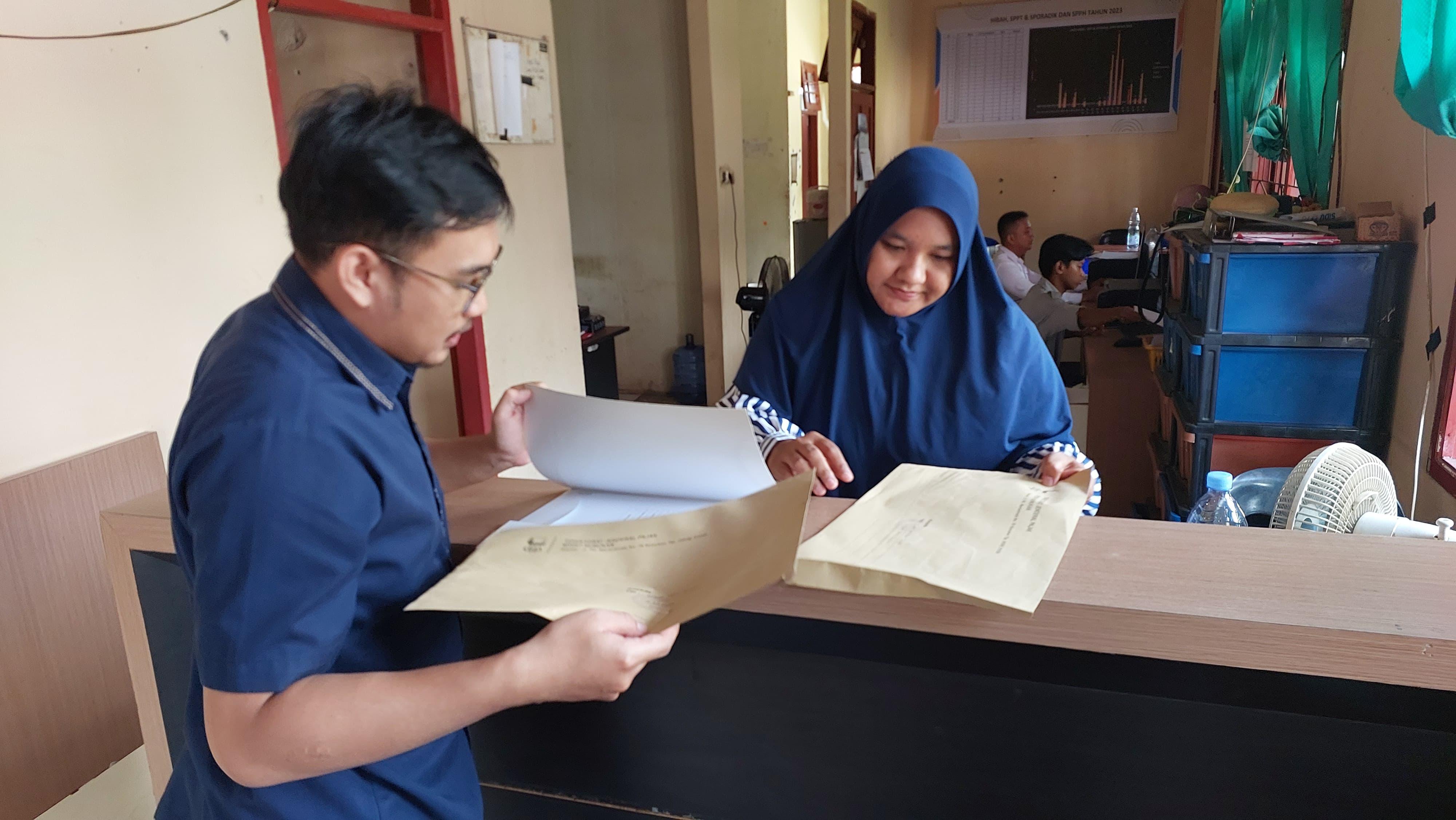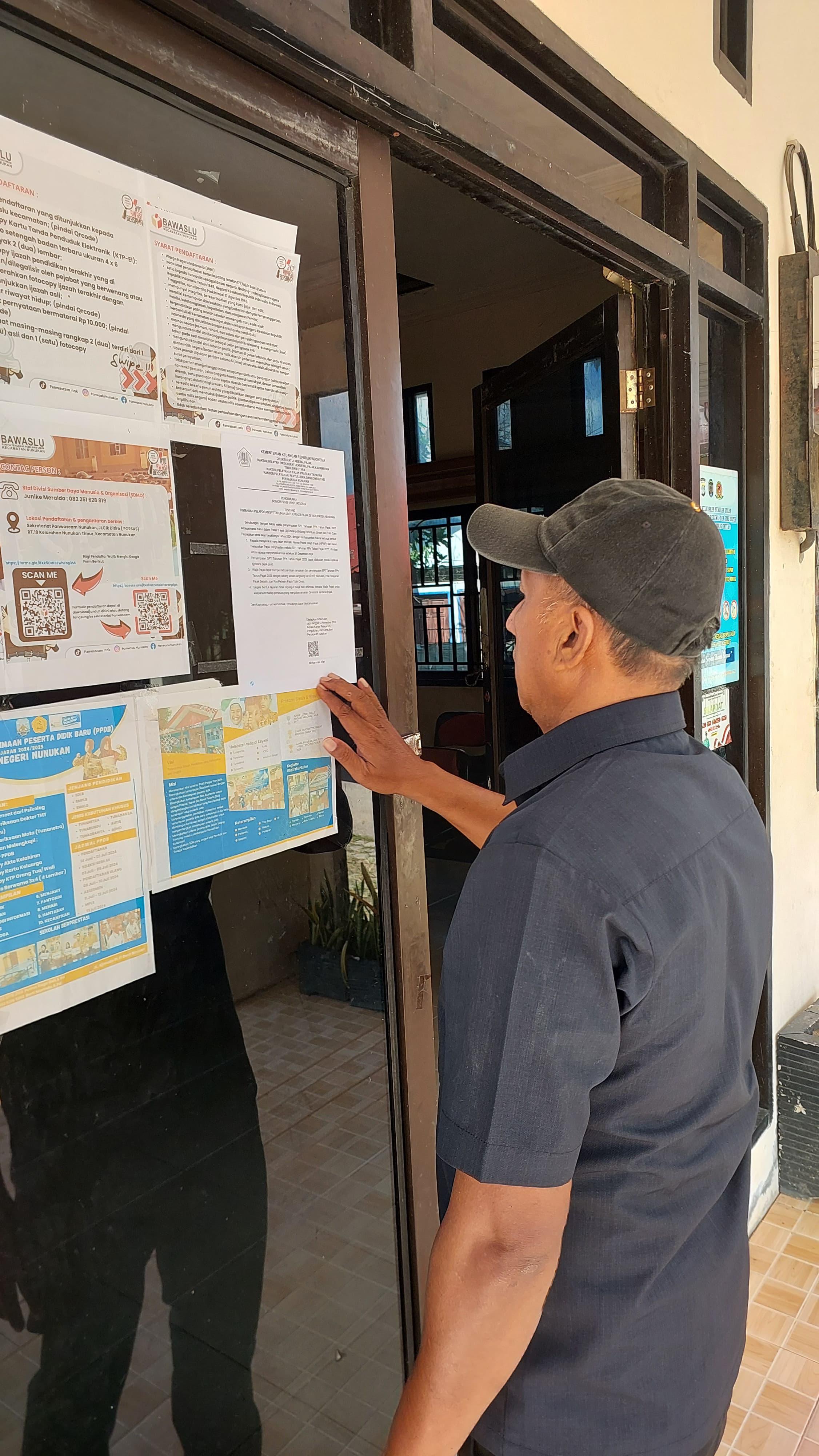 Setelah melakukan koordinasi, Bimo dan Tim KP2KP Nunukan memasang surat imbauan untuk pelaporan SPT Tahunan di papan pengumuman setelah mendapat izin dari pejabat kelurahan.