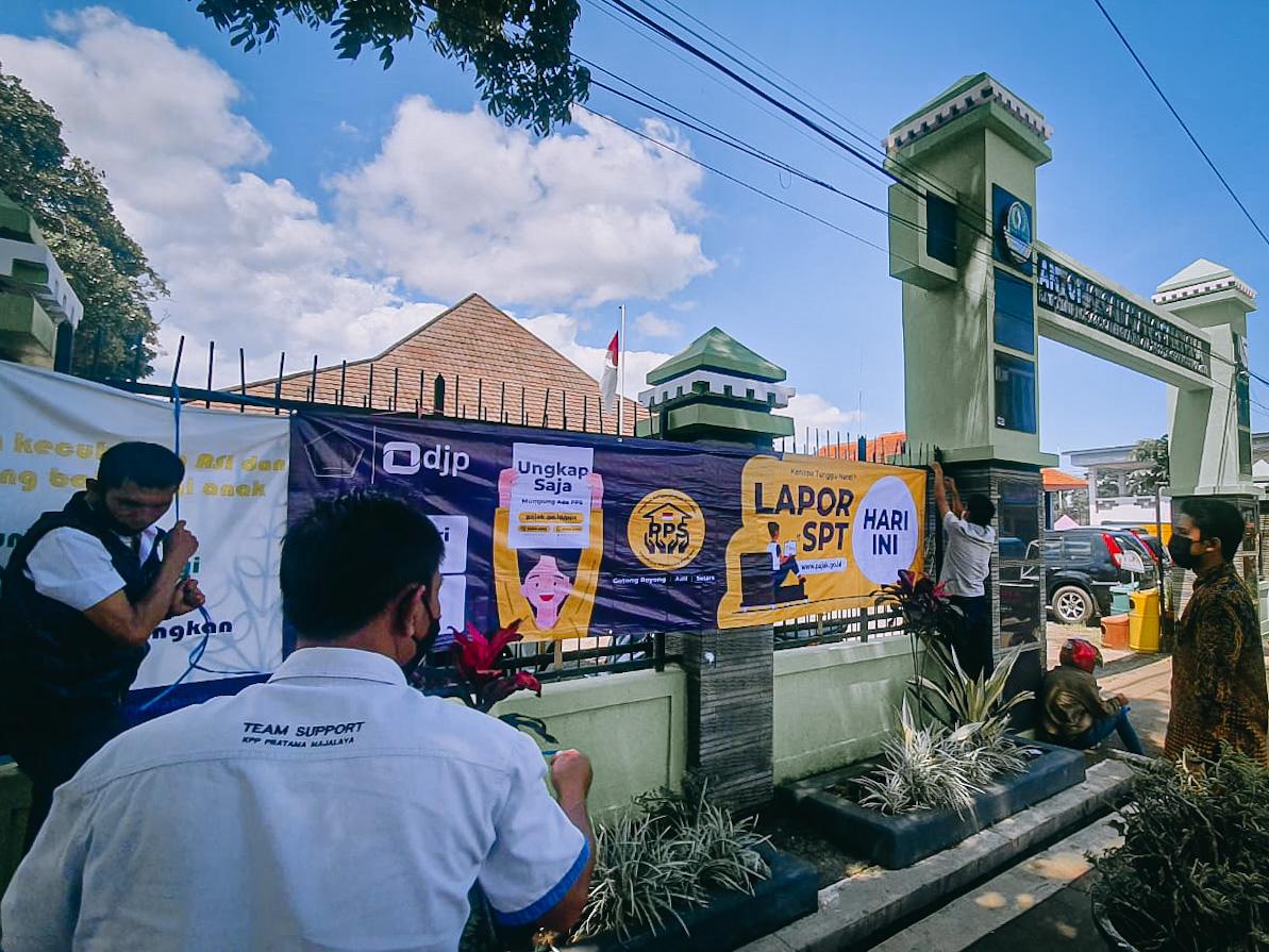 Kantor Pelayanan Pajak (KPP) Pratama Majalaya mengunjungi lima kecamatan di wilayah kerjanya yaitu Nagreg, Cicalengka, Cikancung, dan Rancaekek dalam rangka pemasangan spanduk publikasi pelaporan SPT Tahunan di Kabupaten Bandung (Selasa, 8/3).