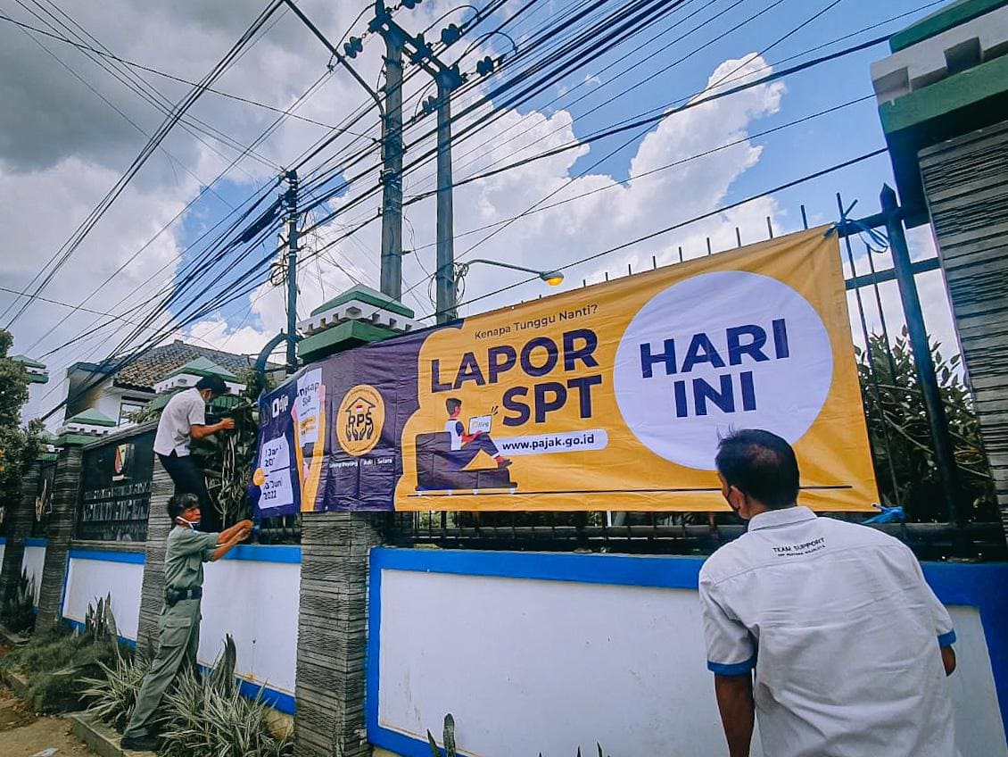Pemasangan spanduk Lapor SPT Tahunan dilakukan di lokasi strategis agar mudah dibaca oleh masyarakat sekitar maupun pengendara yang melewati lokasi tersebut. Sebagaimana diketahui batas waktu pelaporan SPT Tahunan Tepat tepat waktu adalah paling lambat tanggal 31 Maret 2022 untuk Wajib Pajak Orang Pribadi dan 30 April 2022 untuk Wajib Pajak Badan. (FF)
