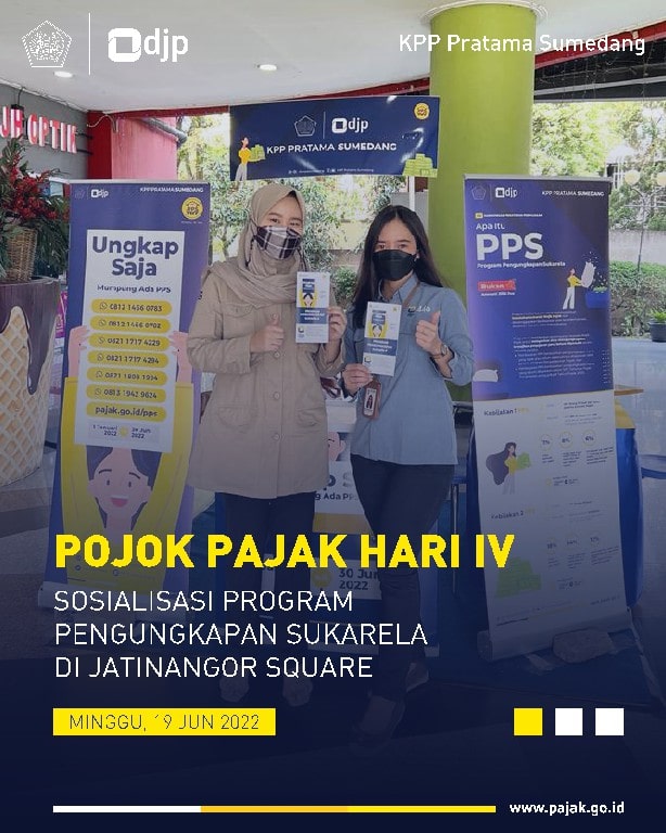 Kantor Pelayanan Pajak (KPP) Pratama Sumedang membuka Pojok Pajak hari keempat untuk sosialisasi Program Pengungkapan Sukarela (PPS) di pusat perbelanjaan Jatinangor Square, Kabupaten Sumedang (Minggu, 19/6).
