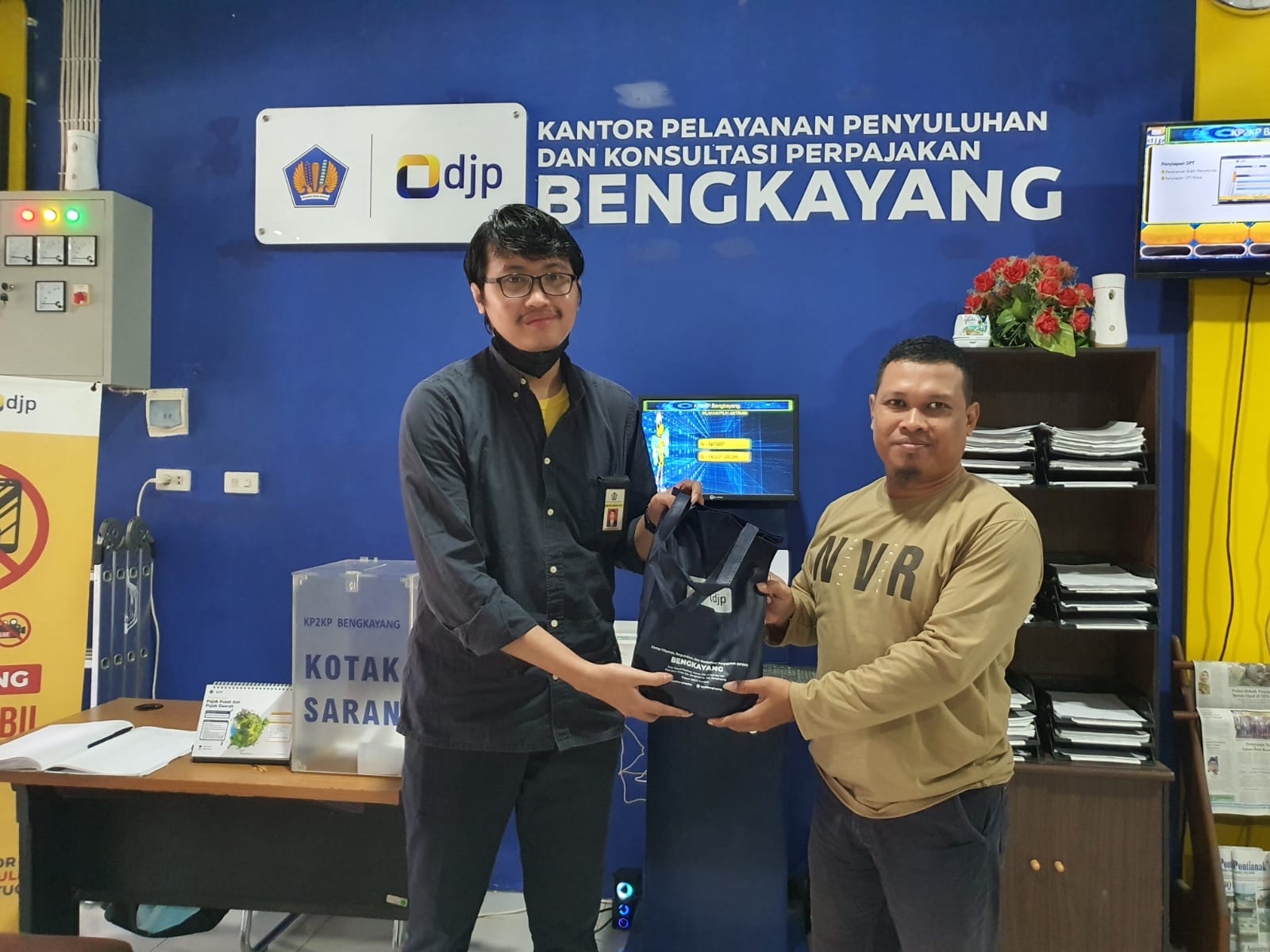 Kantor Pelayanan, Penyuluhan, dan Konsultasi Perpajakan (KP2KP) Bengkayang memberikan apresiasi kepada wajib pajak yang paling awal melaporkan Surat Pemberitahuan (SPT) Tahunan di Kabupaten Bengkayang (Selasa, 7/1). Apresiasi tersebut diberikan kepada sepuluh wajib pajak pertama yang melaporkan SPT Tahunan 2024, baik orang pribadi maupun badan. Wajib pajak ini datang ke KP2KP Bengkayang untuk mendapatkan asistensi pelaporan SPT.