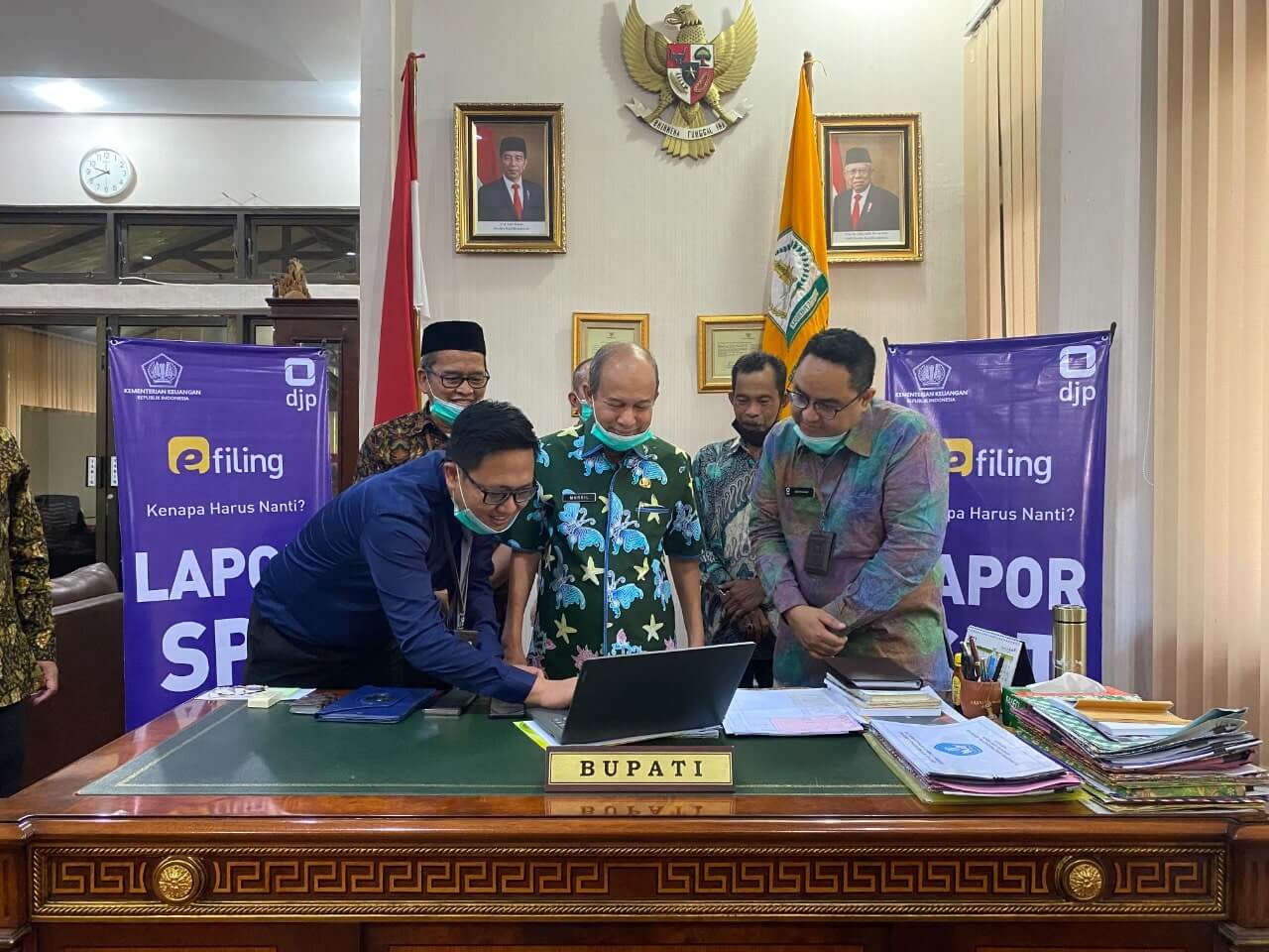 Kantor Pelayanan Pajak (KPP) Pratama Langsa dan KP2KP Karang Baru menyelenggarakan pekan panutan penyampaian SPT PPh Tahun Pajak 2020 bersama Bupati Aceh Tamiang Mursil dan Plt.Sekretaris Daerah Abdullah di Kantor Bupati Aceh Tamiang (Kamis, 4/2).