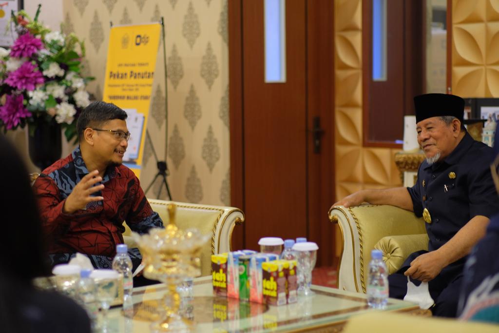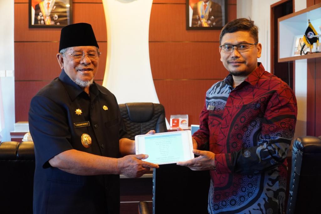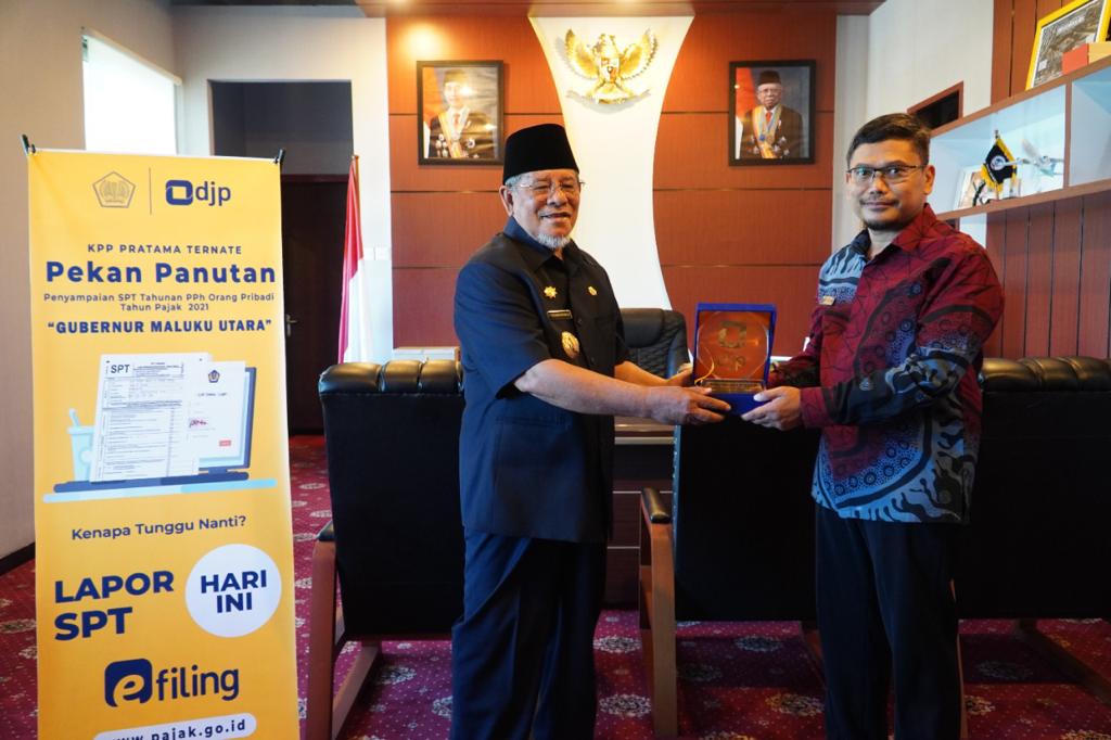 Gubernur Maluku Utara K.H Abdul Ghani Kasuba menyampaikan Surat Pemberitahuan (SPT) Tahunannya melalui e-filing dalam kegiatan Pekan Panutan Kantor Pelayanan Pajak (KPP) Pratama Ternate di Ruang Kerja Gubernur Provinsi Maluku Utara, Kota Ternate (Kamis, 10/3).