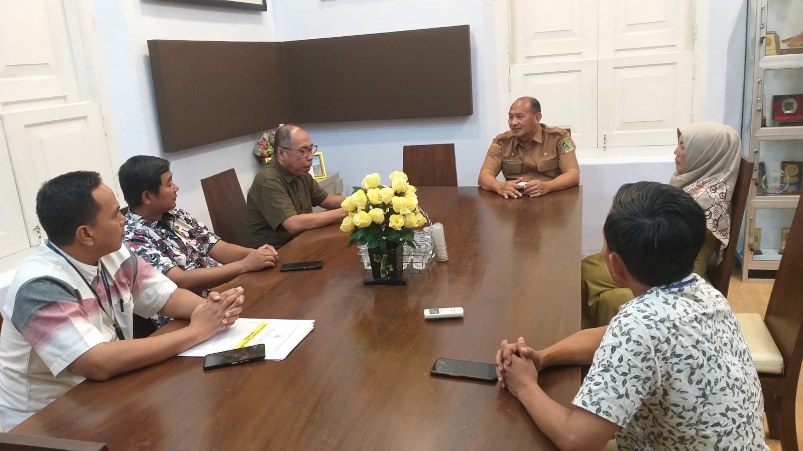 Kepala Kantor Pelayanan Pajak (KPP) Pratama Banyuwangi Ahmad Fudholi melaksanakan pertemuan dengan Firman Sanyoto selaku Kepala Badan Pendapatan Daerah (Bapenda) Kabupaten Banyuwangi (Selasa, 13/6). Pertemuan dilaksanakan di Ruang Kliring Blambangan Bapenda Banyuwangi, Jl. Jaksa Agung Suprapto No.140, Lingkungan Cuking Rw., Mojopanggung, Kec. Giri, Kabupaten Banyuwangi, Jawa Timur.