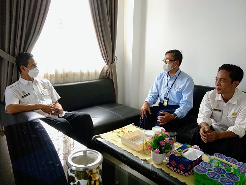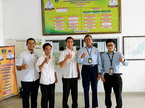 Kepala Kantor Pelayanan, Penyuluhan, dan Konsultasi Perpajakan (KP2KP) Bandarjaya Widi Nugroho dan pelaksananya melakukan kunjungan kerja dalam rangka koordinasi terkait perpajakan dana desa ke Dinas Pemberdayaan Masyarakat dan Kampung (PMK) di Gunung Sugih, Kabupaten Lampung Tengah, Lampung (Rabu, 21/9).