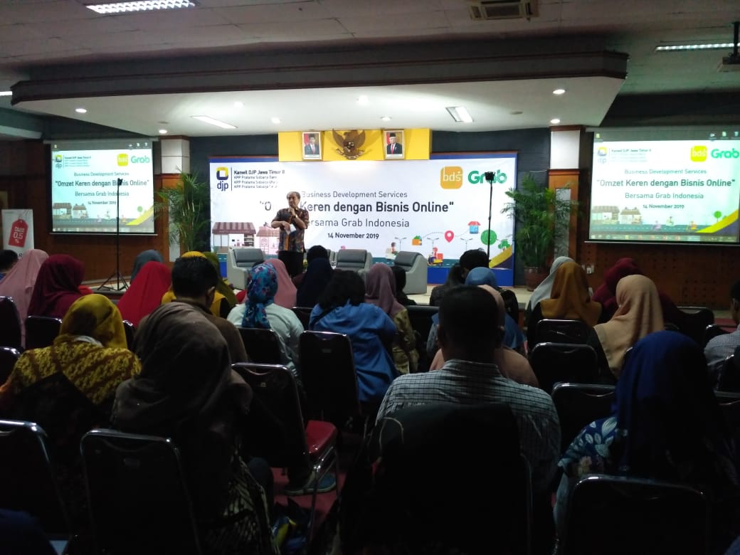 Kanwil DJP Jawa Timur II dan KPP Sidoarjo Raya bekerja sama dengan Grab menggelar acara Bussiness Development Services (BDS) di aula KPP Pratama Sidoarjo Barat, Sidoarjo (Kamis, 14/11).
