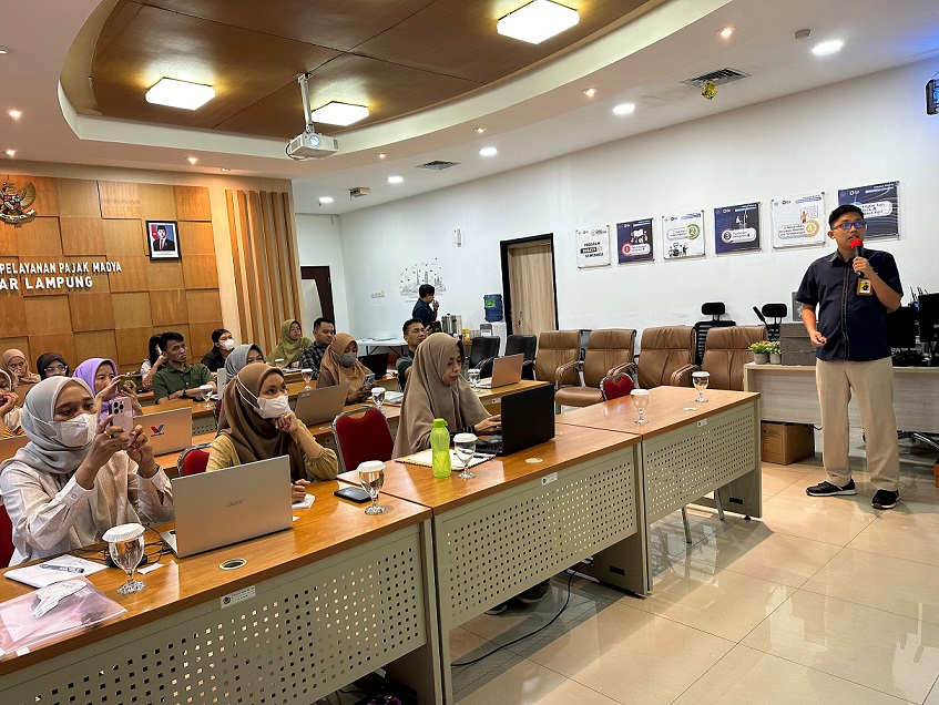 Menjelang akan diimplementasikannya Coretax sebagai sistem administrasi layanan Direktorat Jenderal Pajak, Wajib Pajak Badan yang terdaftar di KPP Madya Bandar Lampung mengikuti kelas pajak secara luring di Ruang Rapat Lantai 2 KPP Madya Bandar Lampung, Kota Bandar Lampung (Rabu, 11/12).