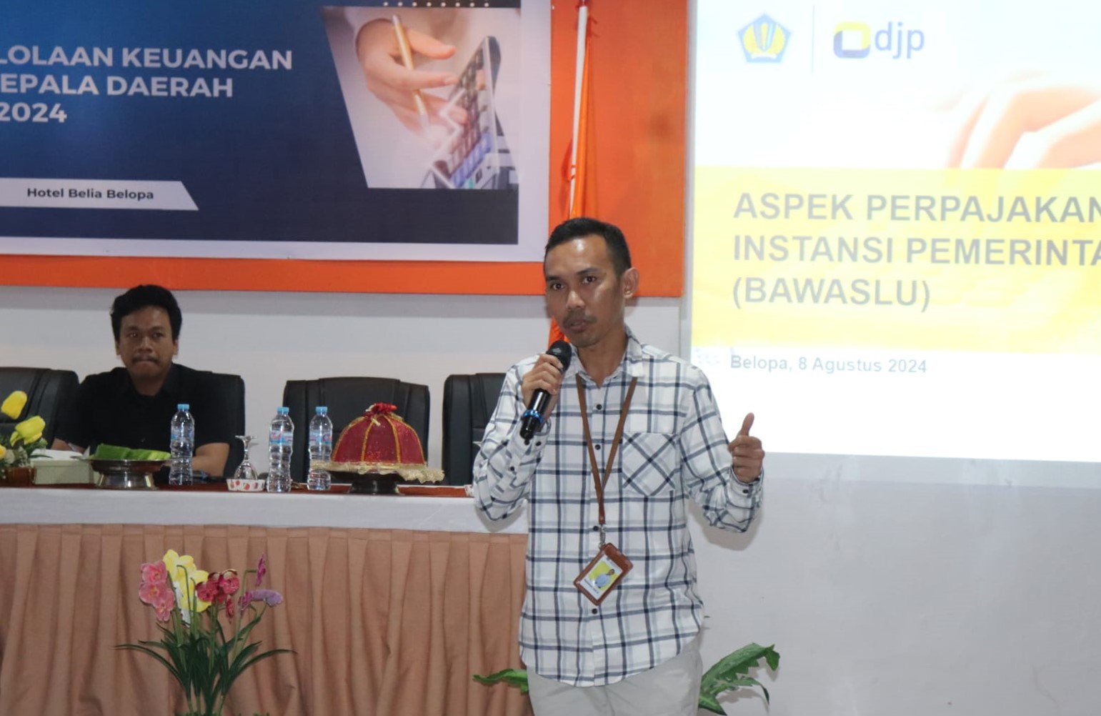 Kantor Pelayanan Pajak (KPP) Pratama Palopo memberikan edukasi perpajakan kepada bendahara di lingkup Badan Pengawas Pemilihan Umum (Bawaslu) Kabupaten Luwu, Sulawesi Selatan (Selasa, 13/8). Edukasi yang diselenggarakan di Aula Hotel Belia Belopa ini diberikan dalam rangka pengelolaan anggaran pengawasan Pemilihan Kepala Daerah (Pilkada) serentak Tahun 2024. Kegiatan ini diselenggarakan guna memberikan pemahaman dan meningkatkan kemampuan bendahara Bawaslu di Kabupaten Luwu mengenai aspek perpajakan bagi wajib pajak instansi pemerintah.