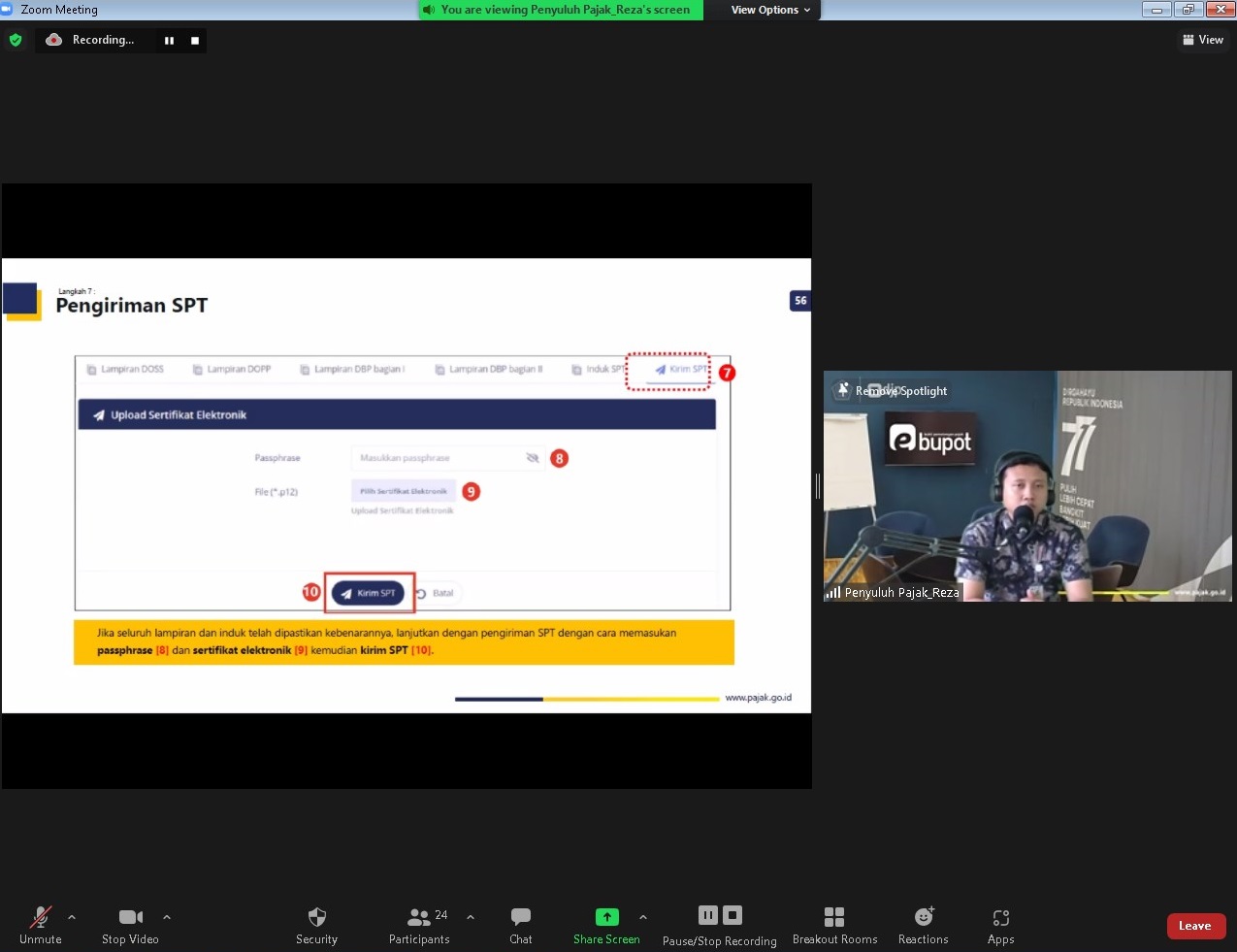 Kantor Pelayanan, Penyuluhan, dan Konsultasi Perpajakan (KP2KP) Kerobokan melakukan kegiatan penyuluhan dengan topik SPT Unifikasi kepada beberapa Bank Perkreditan Rakyat (BPR) yang ada di Kabupaten Badung secara daring melalui media zoom meeting di Denpasar (Jumat, 12/8).