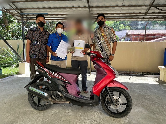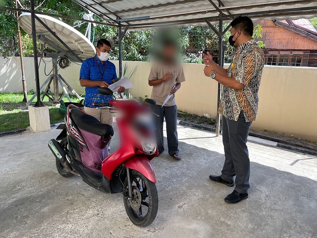 Juru Sita Pajak Negara (JSPN) Kantor Pelayanan Pajak (KPP) Pratama Majene bersama Kepala Seksi Pemeriksaan, Penilaian, dan Penagihan (P3) melakukan kegiatan penyitaan terhadap satu unit sepeda motor milik penunggak pajak di halaman Kantor Pelayanan Pajak (KPP) Majene (Jumat, 29/7).