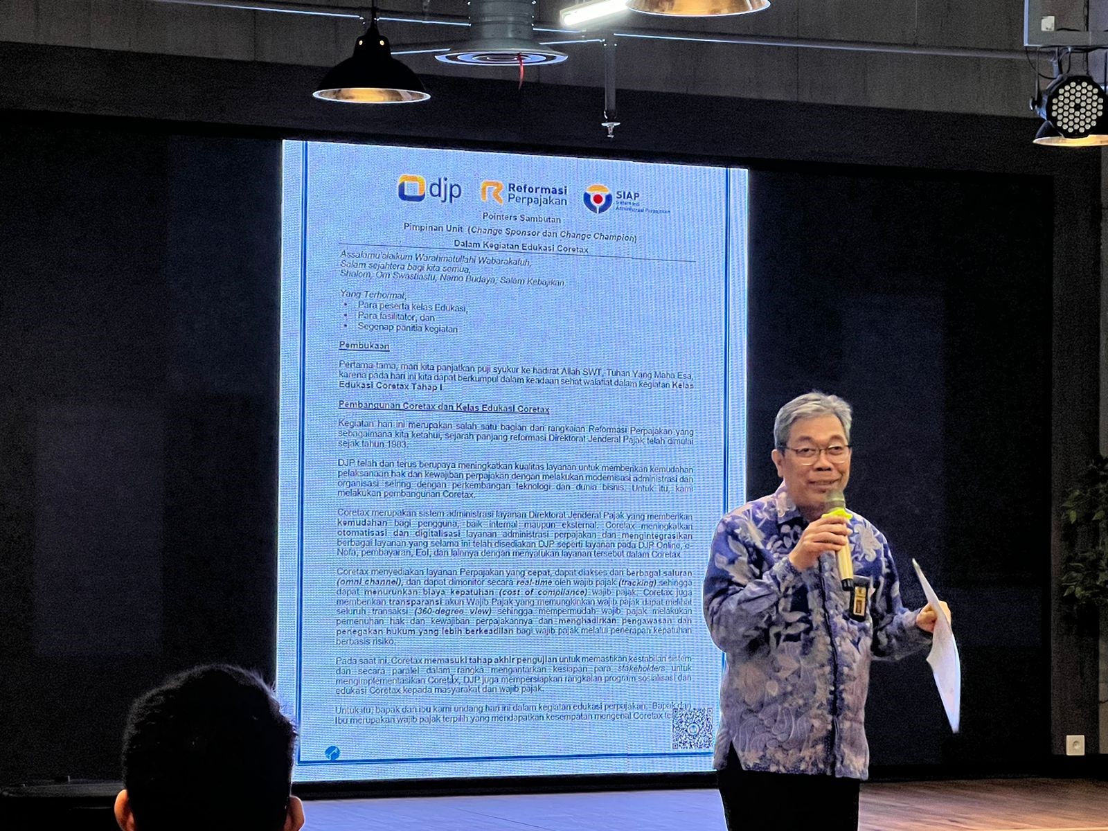 Kegiatan dibuka dengan menyanyklan lagu Indonesia Raya, dilanjutkan sambutan yang dibacakan Kepala Bidang P2HUmas Kanwil DJP Jakarta Utara Hendriyan. "Pada saat ini, Coretax memasuki tahap akhir pengujian untuk memastikan kestabilan sistem, dan secara paralel dalam rangka mengantarkan kesiapan para stakeholders untuk mengimplementasikan Coretax. DJP juga mempersiapkan rangkaian program sosialisasi dan edukasi Coretax kepada masyarakat dan wajib pajak," ujar Hendriyan.