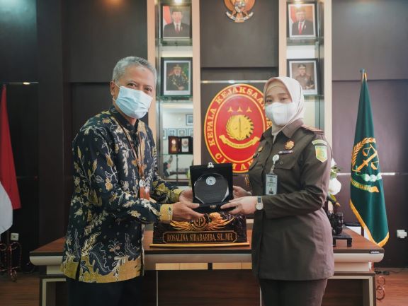 Kepala Kejaksaan Negeri (Kejari) Cimahi Rosalina Sidabariba, S.H., M.H. menunjukkan bukti lapor SPT Tahunannya saat menerima kunjungan Kepala KPP Pratama Cimahi Joni Isparianto dalam rangka Pekan Panutan 2022 di Kantor Kejaksaan Negeri Cimahi, Jalan Sangkuriang nomor 103, Cimahi, (Kamis, 10/3).