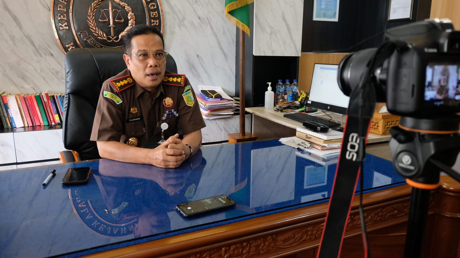 KPP Pratama Tasikmalaya yang diwakili oleh Kepala Seksi Pengawasan VI, Suryadi, Account Representative Alex Maesya Ramdhani dan Muhammad Lutfi Tantan Sutanegara, beserta tim media sosial dari KPP Pratama Tasikmalaya berbincang langsung dengan Kepala Kejaksaan Negeri Kota Tasikmalaya Fajaruddin Yusuf.