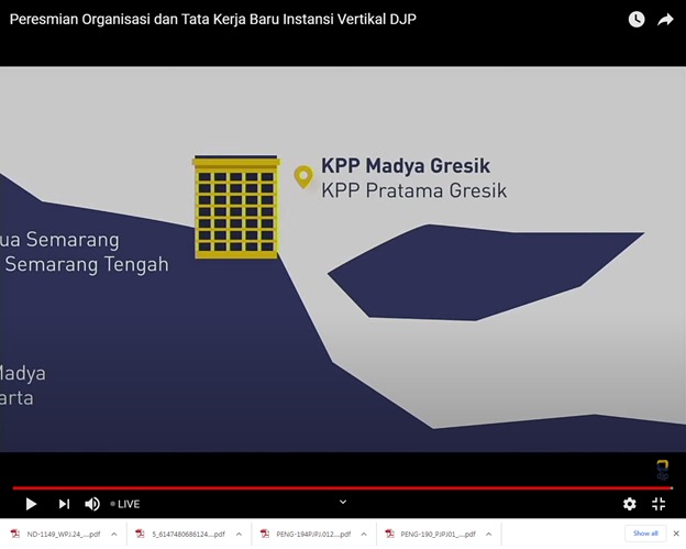 Menteri Keuangan Sri Mulyani Indrawati meresmikan reorganisasi instansi vertikal Direktorat Jenderal Pajak (DJP) di Kantor Pusat Direktorat Jenderal Pajak (DJP) Jakarta (Senin, 24/5). Secara keseluruhan di DJP, ada 18 KPP Madya baru berasal dari KPP Pratama yang diubah jenisnya menjadi KPP Madya, salah satunya KPP Madya Gresik.