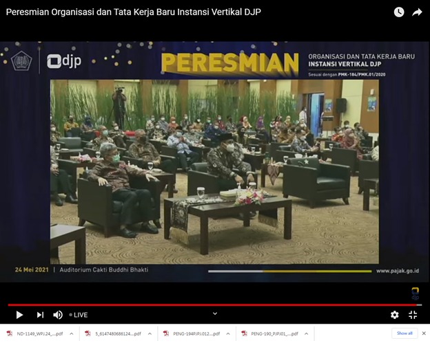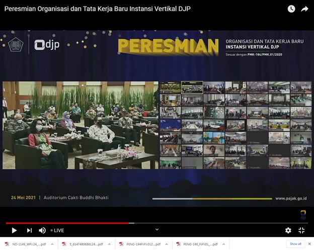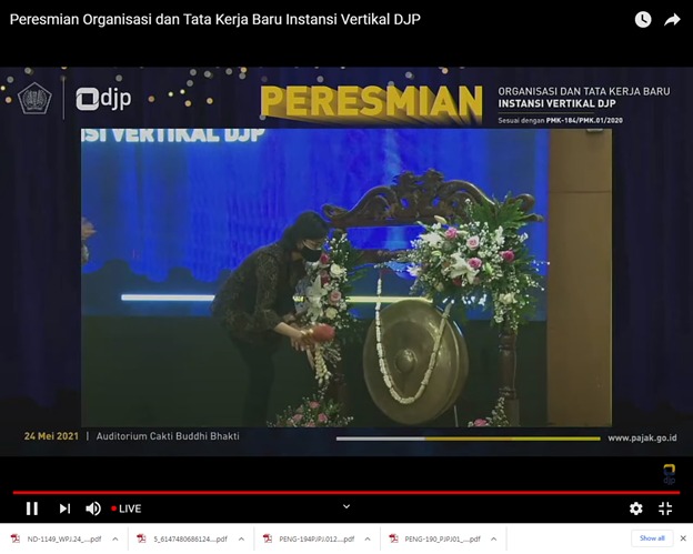 Acara peresmian diselenggarakan di Gedung Mar’ie Muhammad, Kantor Pusat DJP. Wakil Menteri Keuangan Suahasil Nazara, Direktur Jenderal Pajak Suryo Utomo, dan para pejabat eselon I di lingkungan Kementerian Keuangan turut menghadiri acara ini.