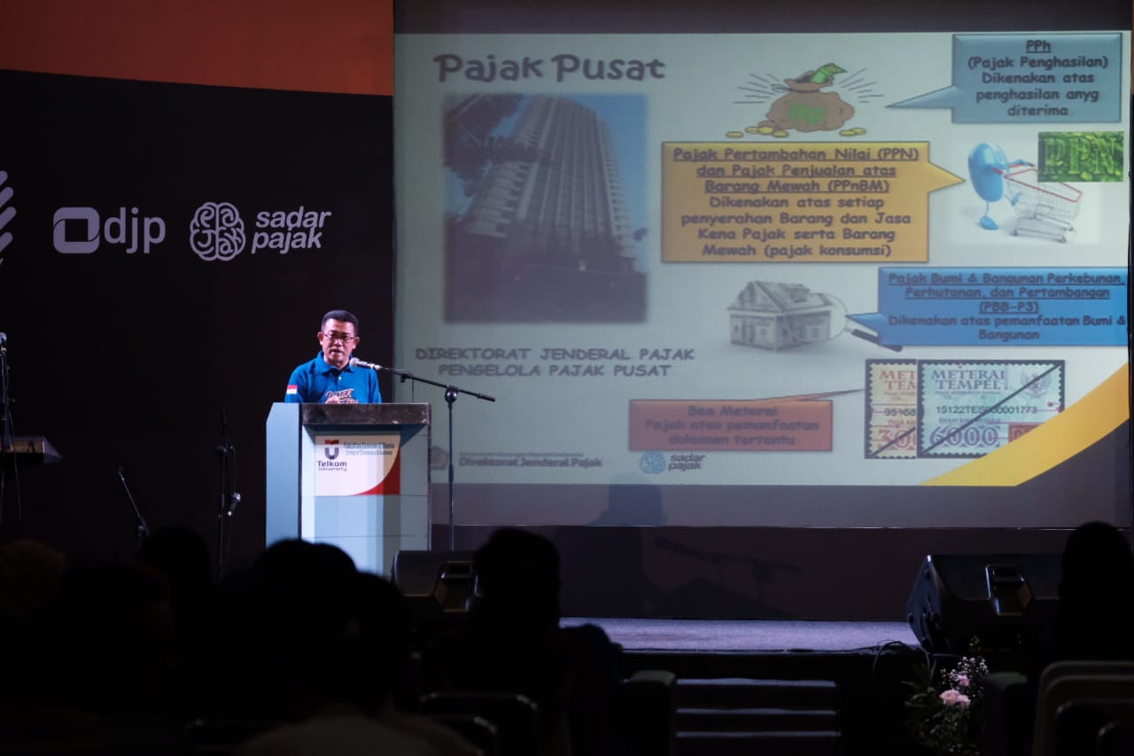 Kanwil DJP Jawa Barat I menggelar program Pajak Bertutur di Telkom University Bandung (Kamis, 21/11). Gelaran ini dihadiri Rektor Telkom University, Prof. Dr. Adiwijaya, S.Si, M.Si, beserta jajarannya, para pengurus dan perwakilan mahasiswa dari 16 Tax Center di wilayah Kanwil DJP Jawa Barat I, serta 200 mahasiswa Telkom University.