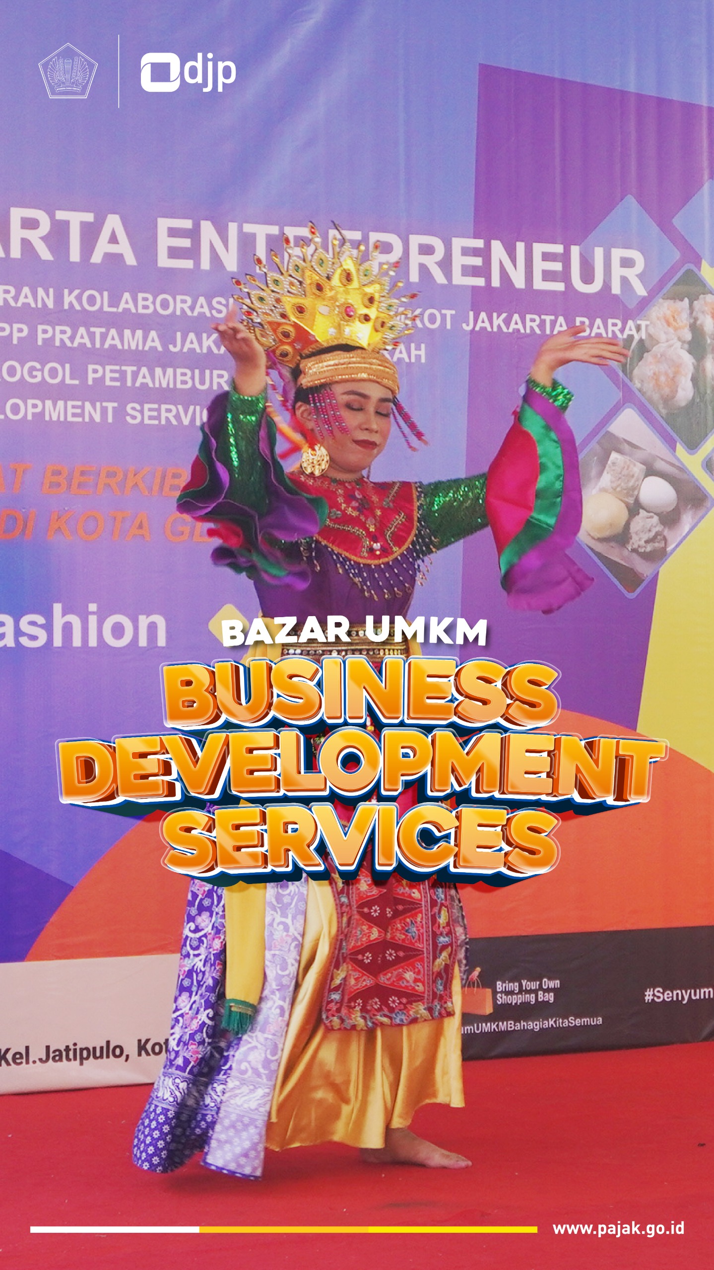 Kantor Wilayah (Kanwil) Direktorat Jenderal Pajak (DJP) Jakarta Barat, Kantor Pelayanan Pajak (KPP) Pratama Jakarta Palmerah, dan KPP Pratama Jakarta Grogol Petamburan berkolaborasi dengan Pemerintah Kota Administrasi Jakarta Barat menggelar acara Business Development Services (BDS) dengan tema "UMKM Jakbar Berkibar, Dukung Jakarta menjadi Kota Global" bertempat di lapangan KPP Pratama Jakarta Palmerah (Rabu, 26/6). BDS diadakan selama dua hari yakni Rabu s.d. Kamis tanggal 26 s.d. 27 Juni 2024 serta diikuti oleh 160 peserta UMKM dari Kecamatan Palmerah dan Kecamatan Grogol Petamburan.