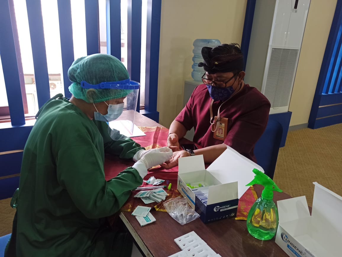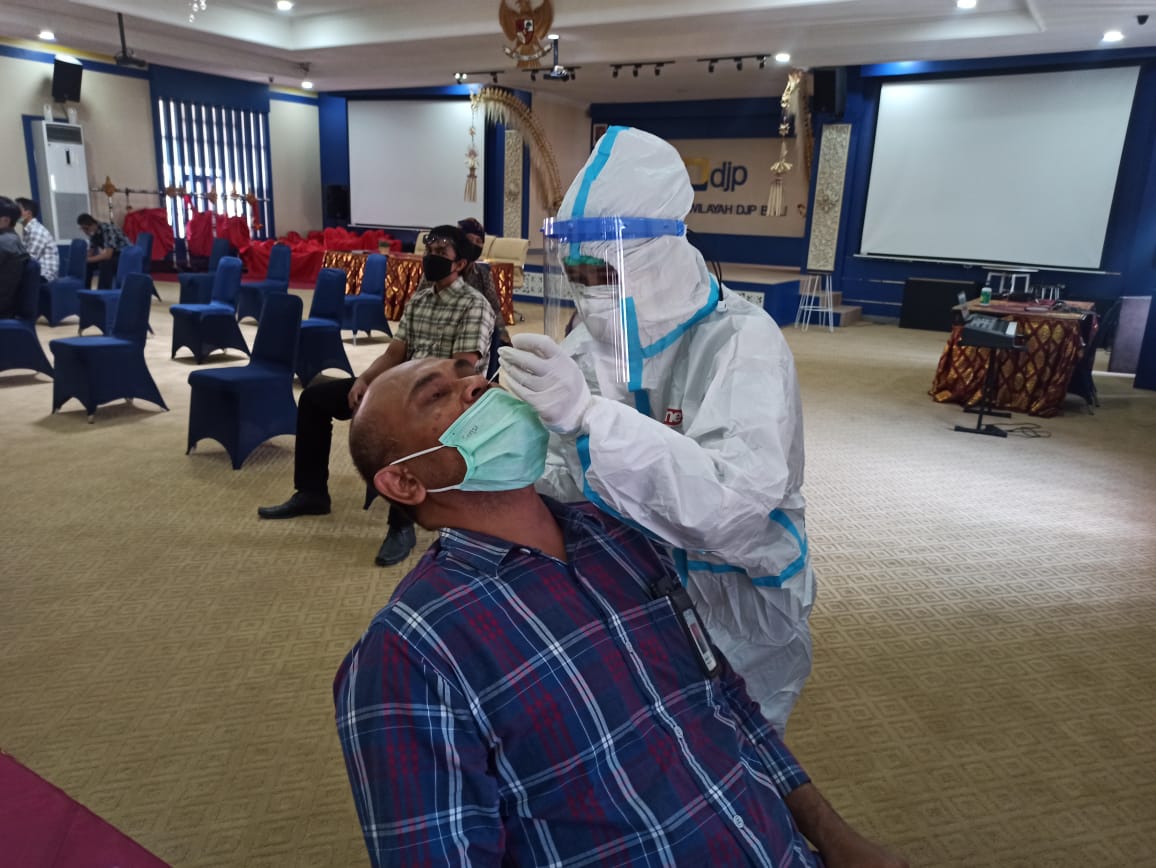 Dalam rangka mengurangi jumlah penyebaran Corona Virus Disease 2019 (Covid-19), Kantor Wilayah Direktorat Jenderal Pajak (Kanwil DJP) Bali mengadakan tes cepat rutin di Aula Kanwil DJP Bali (Jumat, 11/12). Kegiatan ini diikuti oleh 161 pegawai yang terdiri dari pejabat eselon II, eselon III, eselon IV, fungsional, pelaksana, hingga honorer yang ada di Kanwil DJP Bali. Kegiatan tes cepat yang dilaksanakan selama 2 hari pada 10 s.d. 11 Desember 2020 ini merupakan kegiatan rutin Kanwil DJP Bali setiap bulan selama masa pandemi Covid-19.