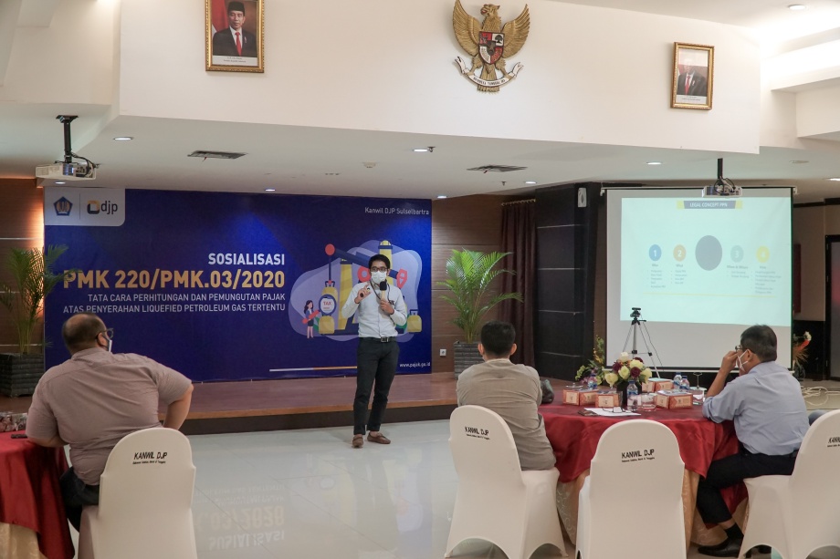 Kantor Wilayah Direktorat Jenderal Pajak Sulawesi Selatan, Barat, dan Tenggara (Kanwil DJP Sulselbartra) menyelenggarakan sosialisasi perpajakan mengenai PMK 220/PMK.03/2020 tentang Tata Cara Penghitungan dan Pemungutan Pajak Pertambahan Nilai atas Penyerahan Liquefied Petroleum Gas Tertentu di ruang aula lantai lima Kanwil DJP Sulselbartra di Kota Makassar (Rabu, 7/4).
