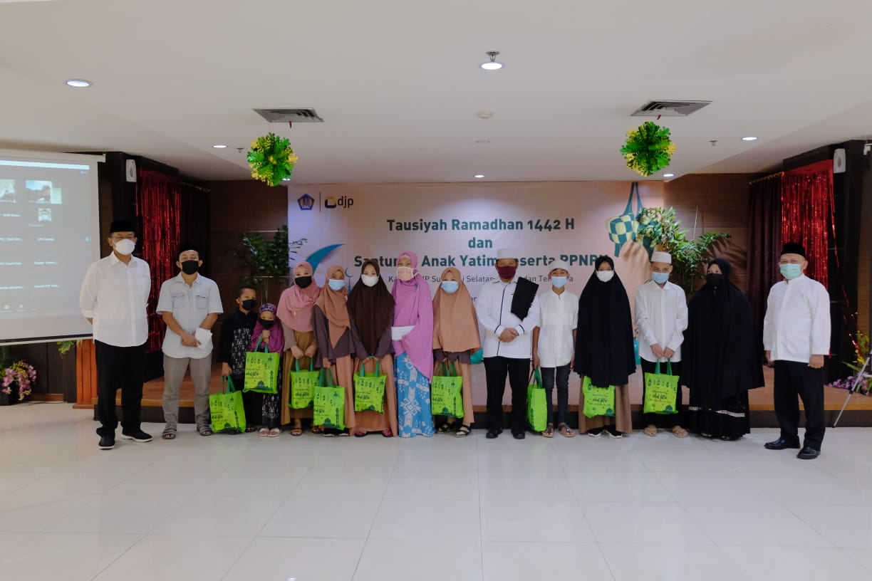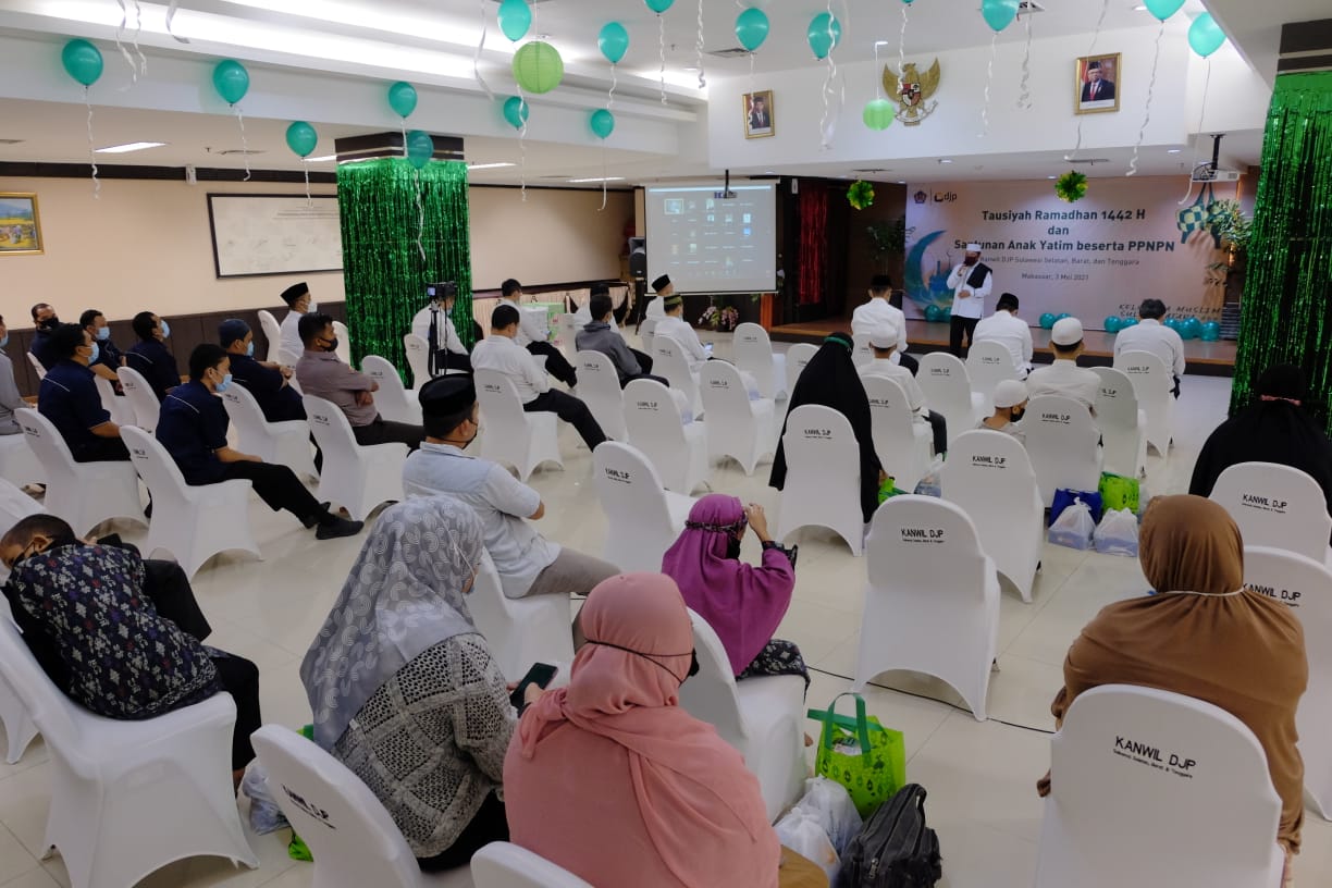 Acara yang dilangsungkan di ruang aula Kanwil DJP Sulselbartra ini diikuti oleh seluruh pegawai muslim Kanwil DJP Sulselbartra, baik secara daring maupun secara luring dengan tetap menjalankan protokol kesehatan. Kegiatan kali ini dirangkai pula dengan pemberian santunan berisi paket sembako pada penghuni panti asuhan serta pegawai pemerintah non PNS di lingkungan Kanwil DJP Sulselbartra.