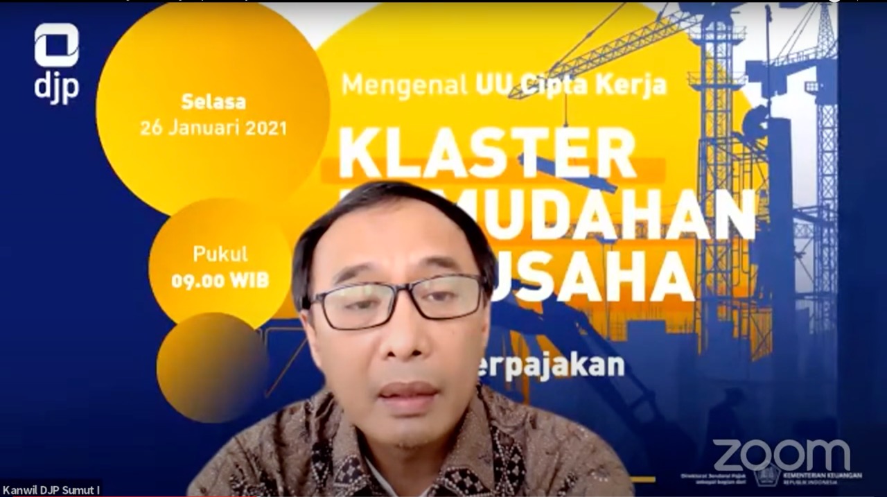 Sosialisasi yang mengulas tentang UU Cipta Kerja Klaster Kemudahan Berusaha Bidang Perpajakan tersebut dibuka oleh Kepala Bidang Penyuluhan, Pelayanan dan Hubungan Masyarakat Kanwil DJP Sumatera Utara I Bismar Fahlerie. Dalam kesempatan yang digelar secara daring itu, Tim dari Direktorat Peraturan Perpajakan I menjelaskan tentang UU Cipta Kerja Klaster Kemudahan Berusaha Bidang Perpajakan.