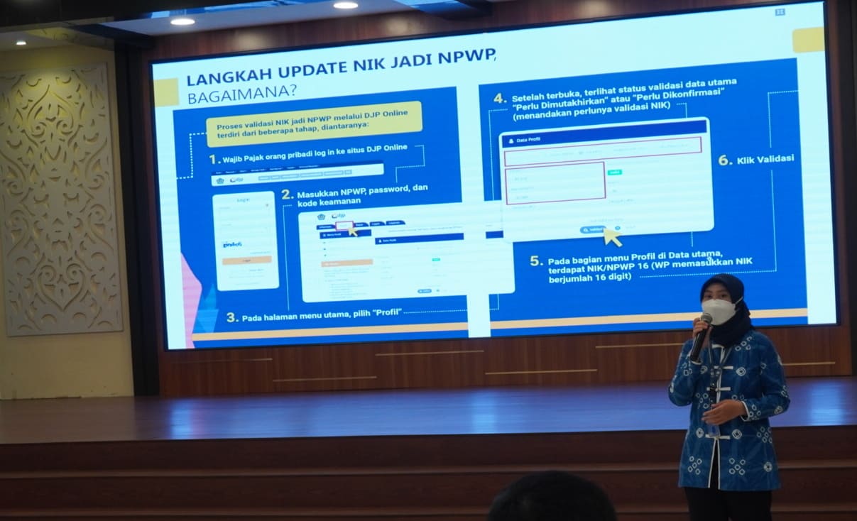 Dalam paparannya, penyuluh pajak yang diwakili oleh Nanang Krisbianto dan Intan Atika Puspaningtyas mengajak para peserta untuk menginformasikan kewajiban pemutakhiran data kepada kerabat dan nasabah.